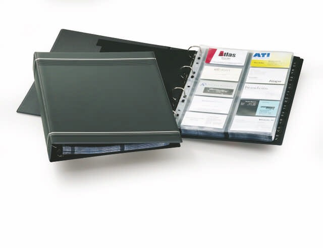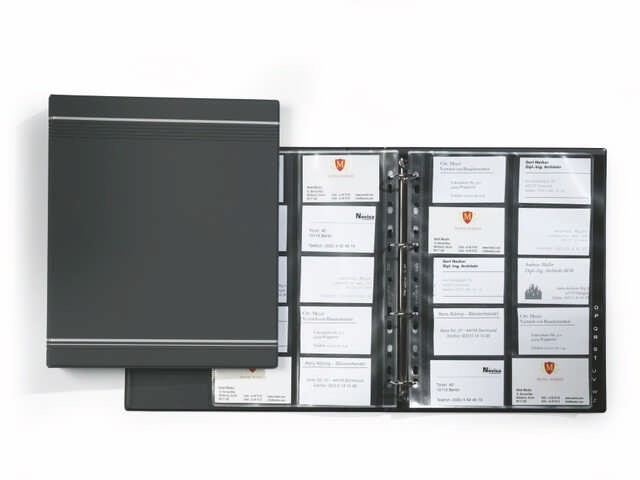 Album sa 20 folija za 400 vizitkarti dimenzije 90 x 57 mm. Sadrži i dvanaestodelni A-Z indeks.Dimenzije: 315 x 255 mm.