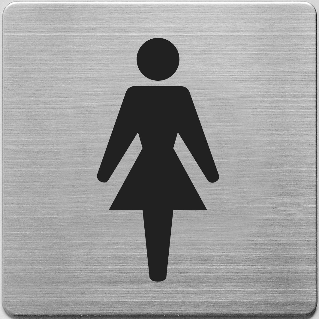 Samolepljiva metalna pločica za označavanje ženskog toaleta. Dimenzije: 90x90x1 mm. Može se lepiti na zid, staklo, vrata,...