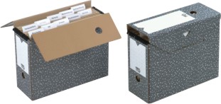 Idealno rešenje za arhiviranje dokumentacije u visećim fasciklama. Može se koristiti i u uspravnom i u vertikalnom položaju. Izrađena od kartona izuzetne čvrstine. Dimenzije: 12x33,5x27,5 cm.