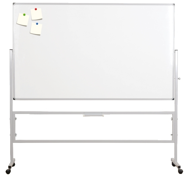 Dvostrana piši-briši tabla sa magnetnom površinom. Izuzetno stabilna konstrukcija. Četiri točkića sa kočnicama za lakšu manipulaciju. Može se koristiti za pisanje markerima ili kao površina za isticanje informacija u kombinaciji sa različitim magnetnim ramovima.