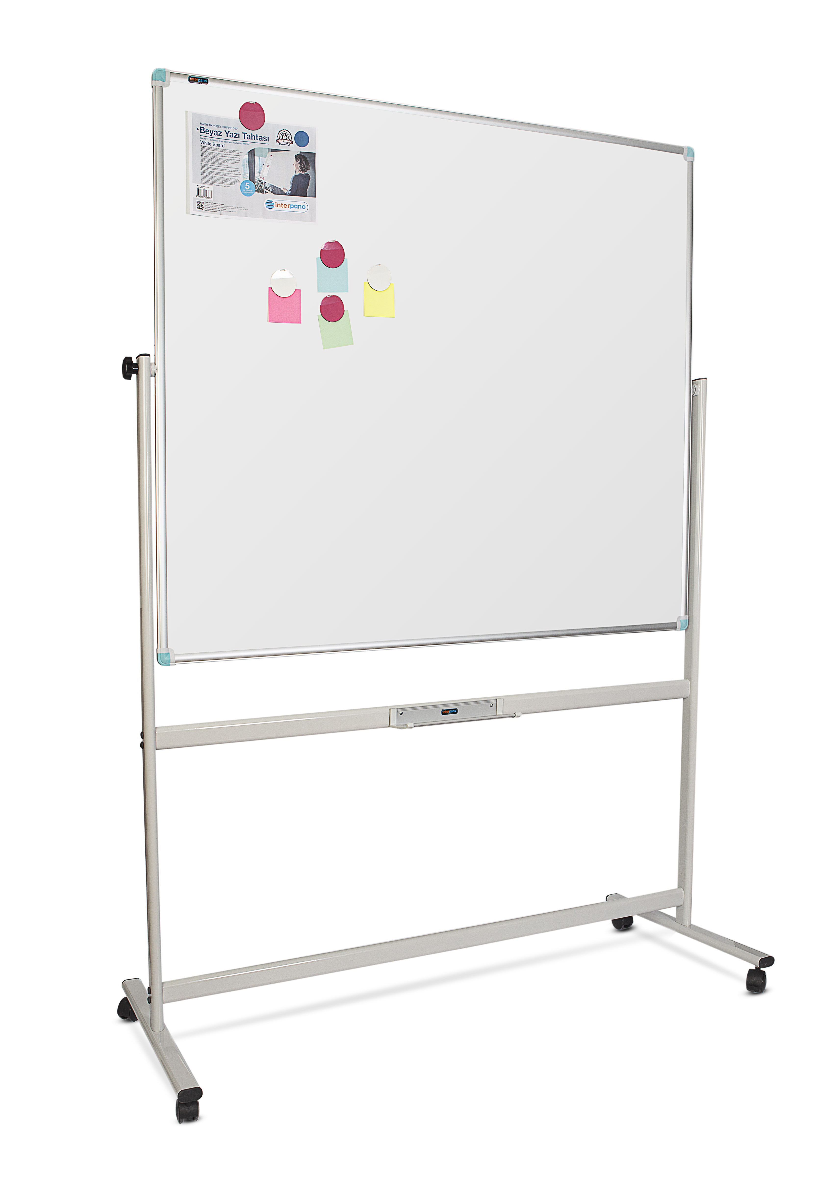 Dvostrana piši-briši tabla sa magnetnom površinom. Izuzetno stabilna konstrukcija. Četiri točkića sa kočnicama za lakšu manipulaciju. Može se koristiti za pisanje markerima ili kao površina za isticanje informacija u kombinaciji sa različitim magnetnim ramovima.