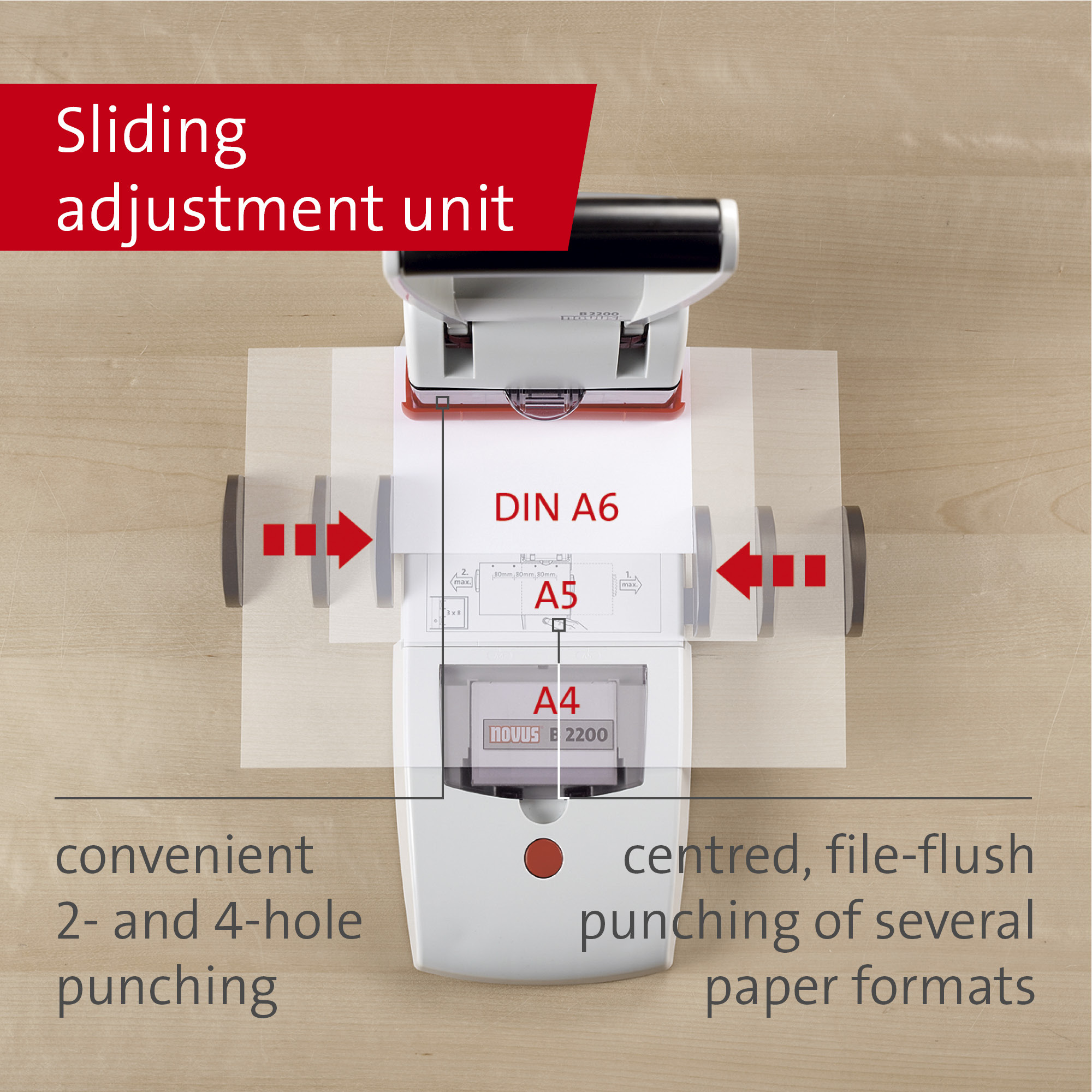Automatsko centriranje vođice papira za precizno bušenje rupa.