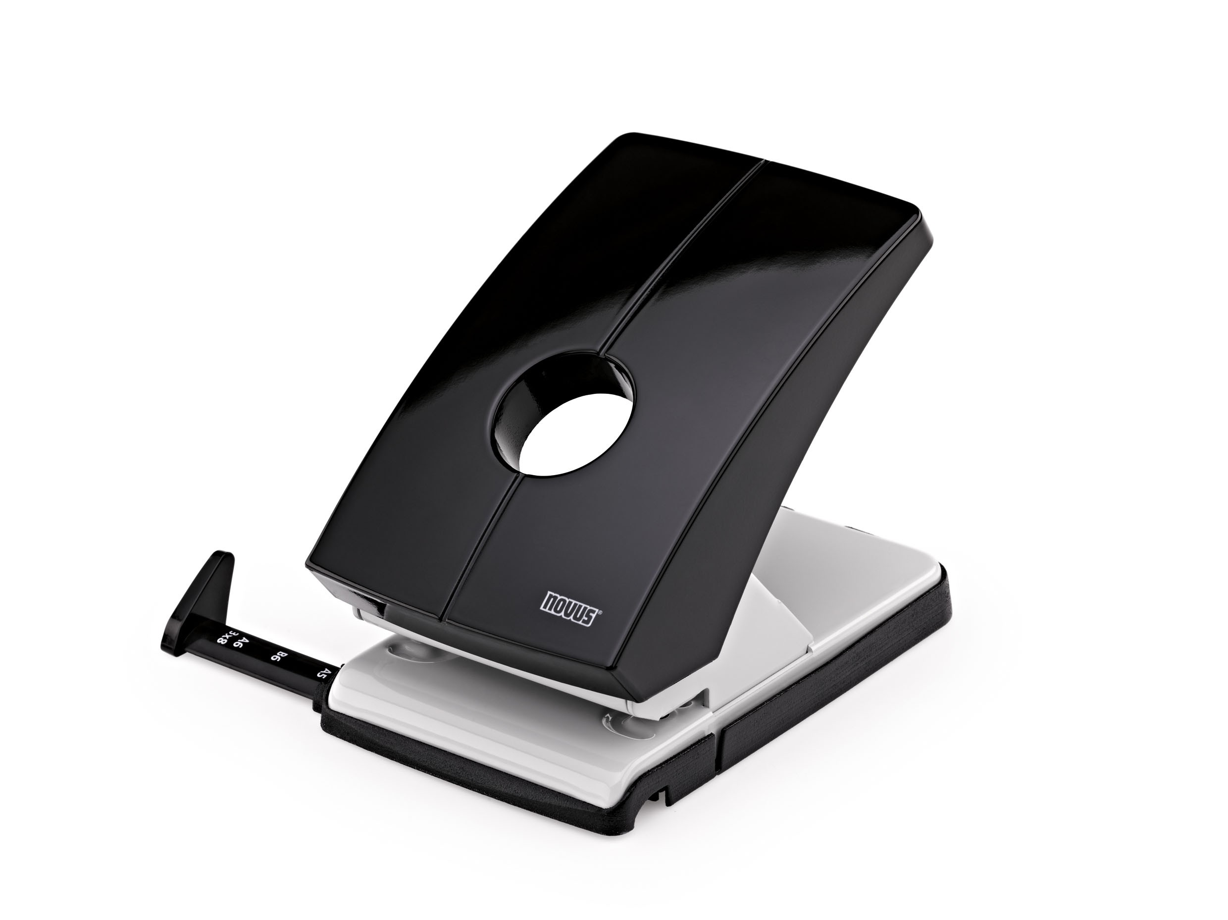 Kancelarijski bušač za profesionalnu opotrebu. Potpuno metalna konstrukcija presvučena plastikom visokog sjaja. Izuzetno udobno štelovanje graničnika i pražnjenje konfeta. Poluga se može zaključati u donjem položaju radi uštede prostora. Garancija 10 godina.