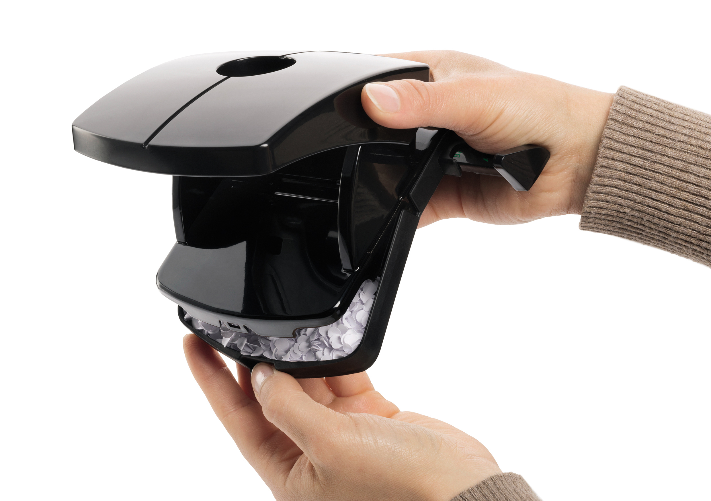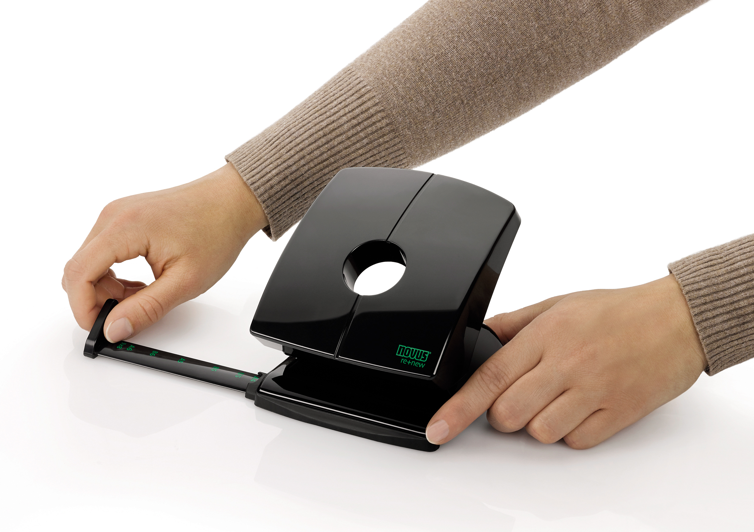 Plastični delovi i pakovanje proizvoda su od recikliranog materijela. Kancelarijski bušač vrhunskog kvaliteta. Metalna konstrukcija presvučena plastikom visokog sjaja. Izuzetno udobno štelovanje graničnika i pražnjenje konfeta. Garancija 10 godina.