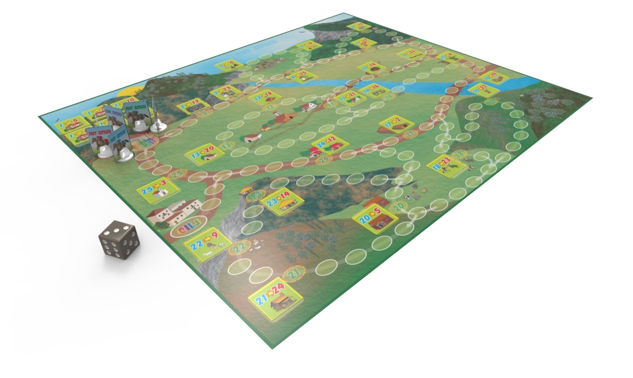 Kutija 34 x 20 x 3 cm, talon, kockica, 6 figurica, 30 markera, kratko uputstvo.