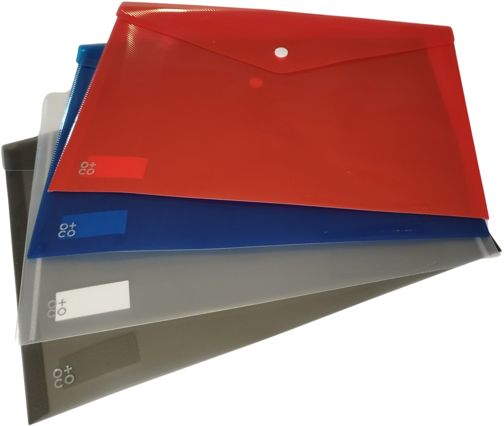 Plastična fascikla A4 formata za čuvanje i prenošenje dokumenata. Praktična, lagana i pogodna za svakodnevnu upotrebu. Fascikla se čvrsto zatvara dugmetom.