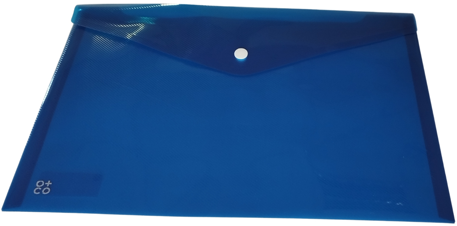 Plastična fascikla A4 formata za čuvanje i prenošenje dokumenata. Praktična, lagana i pogodna za svakodnevnu upotrebu. Fascikla se čvrsto zatvara dugmetom.