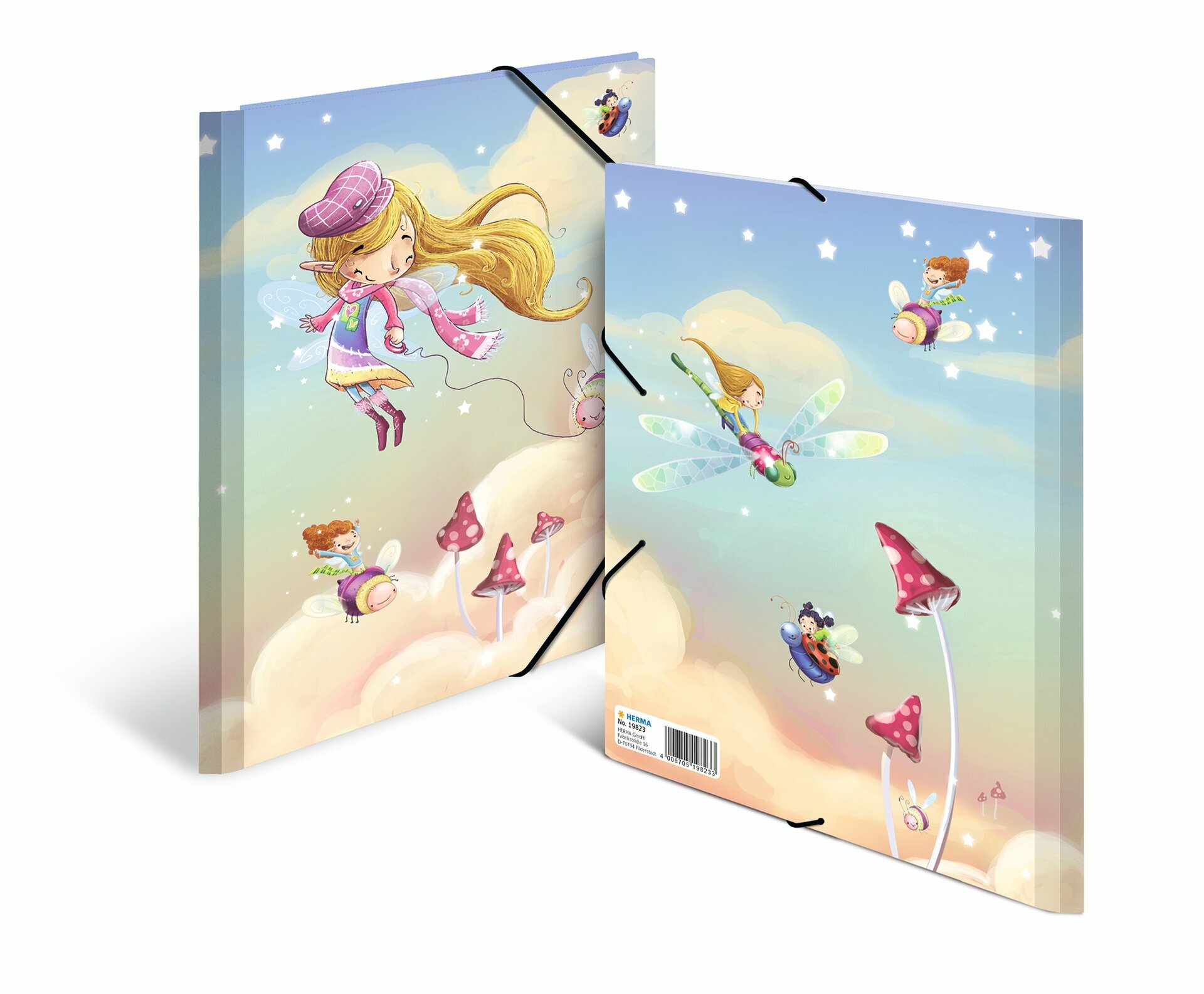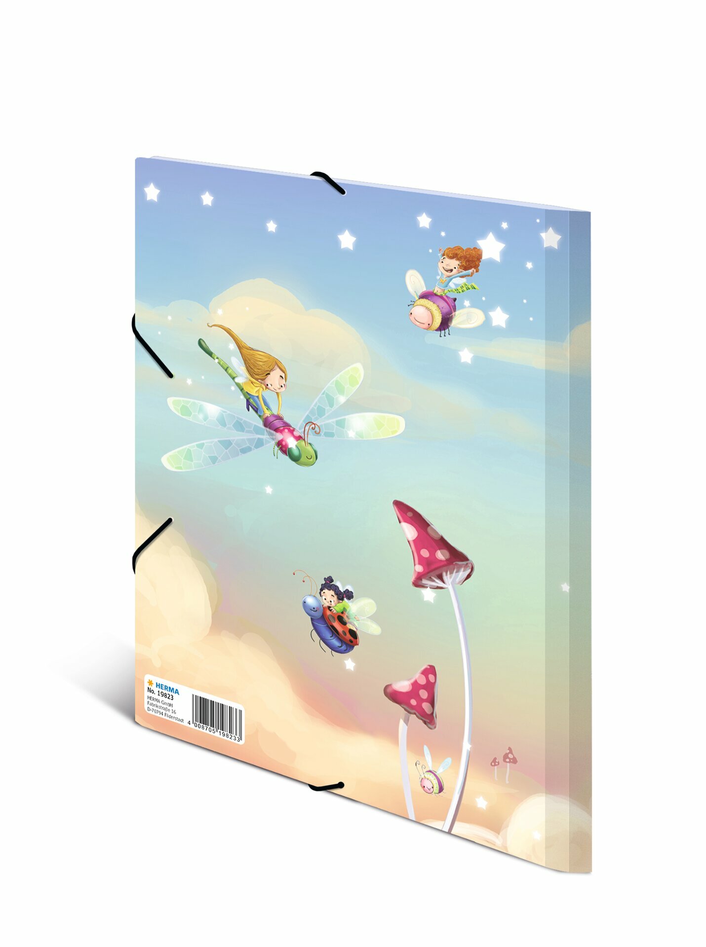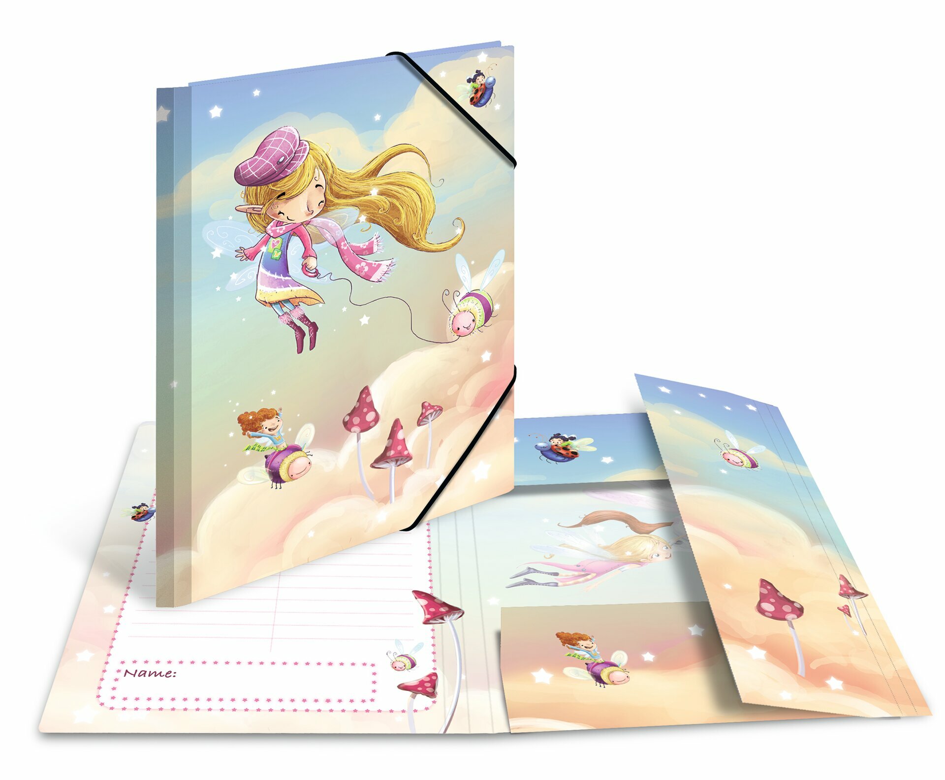 Fascikla A4 plastificirana sa gumicom, izradjena od čvrstog kartona, sa elastičnim ugaonim trakama i 3 štampana unutrašnja preklopa. Savršena za vrtić,školu, odlaganje i čuvanje dečijih crteža, prvih napisanih slova... Motiv: vile koje plešu.