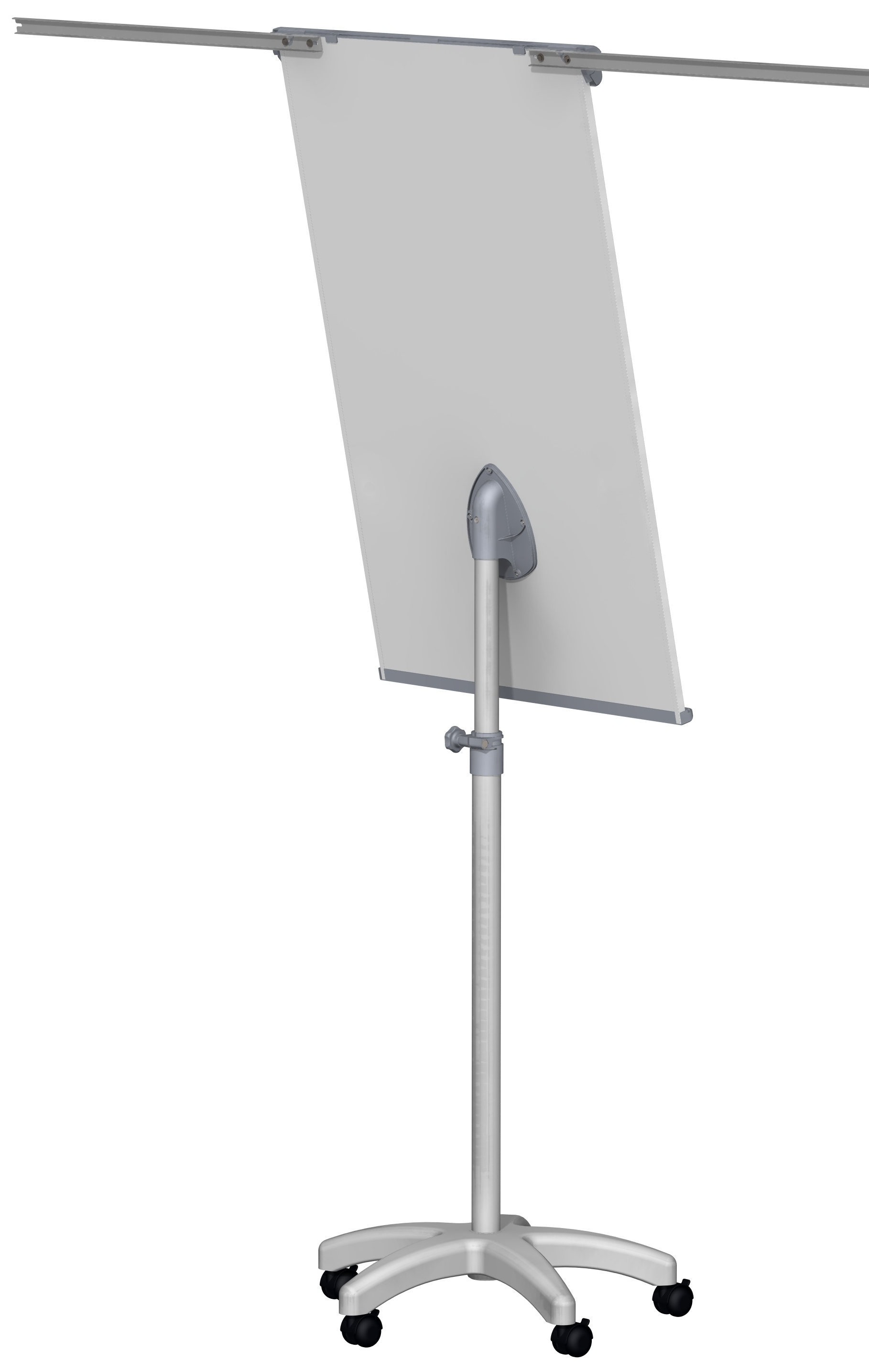 Površina piši-briši, magnetna dimenzije 105x68cm. Podesiva po visini do 220cm. Kukice za blok podesive po širini. Polica za markere celom širinom table. Ekstenzija za ispisane stranice sa obe strane. Točkići sa kočnicama.