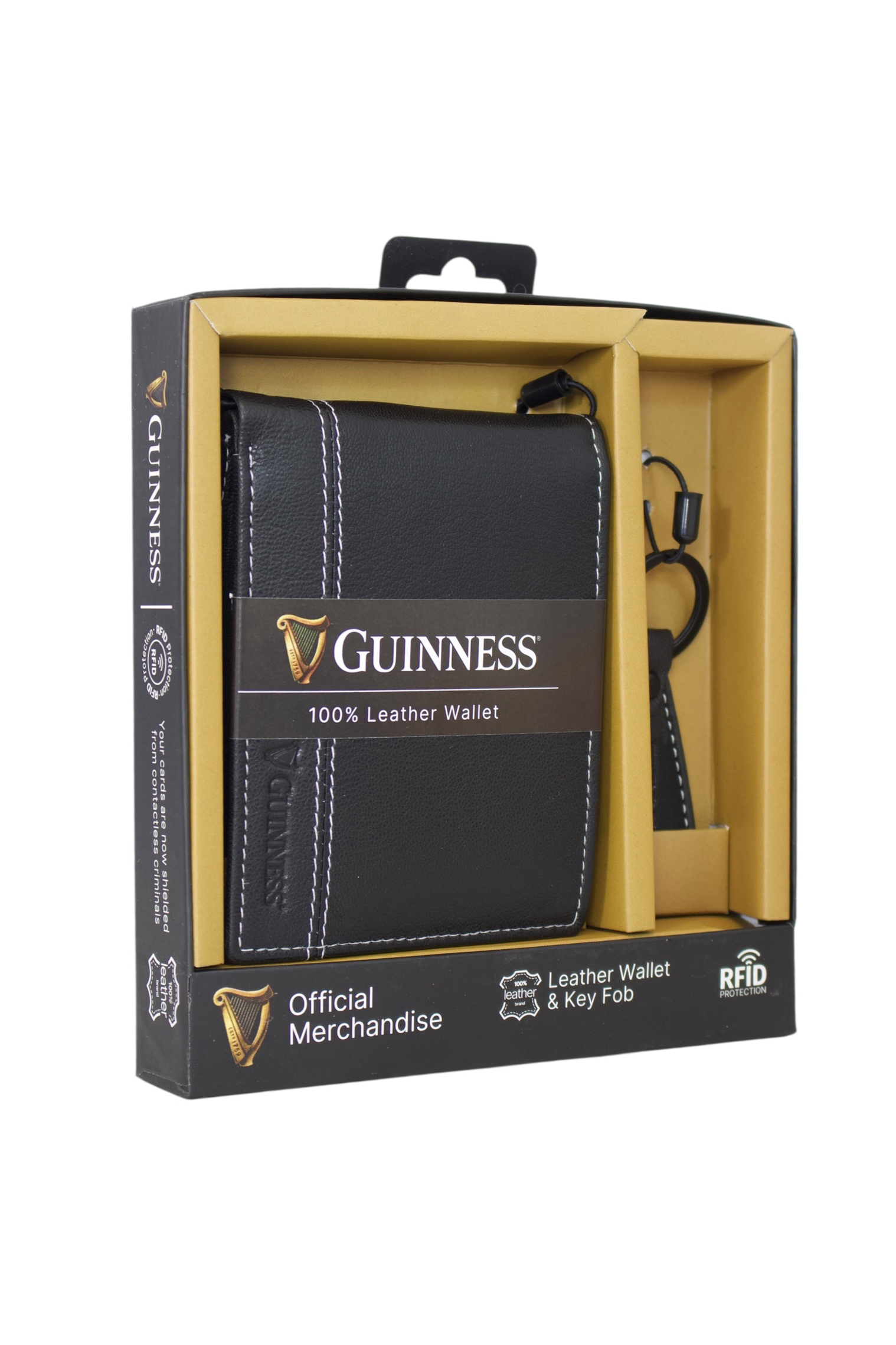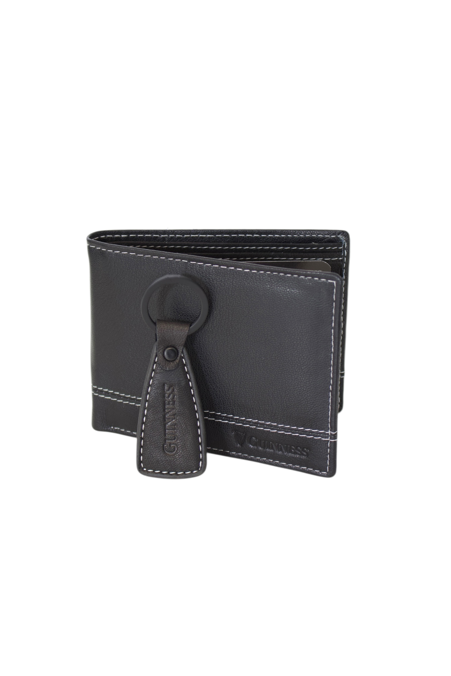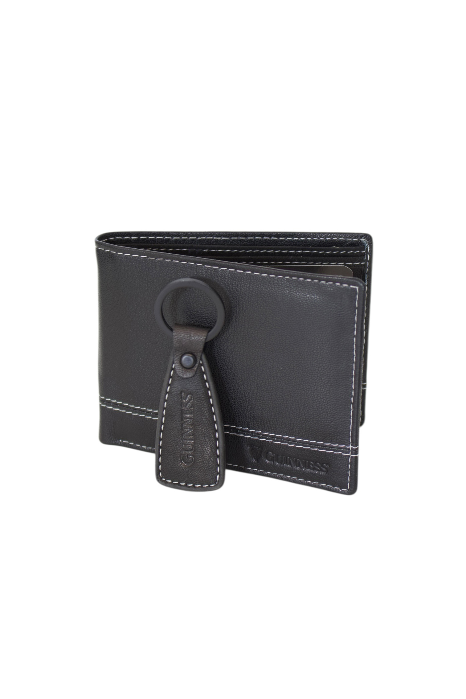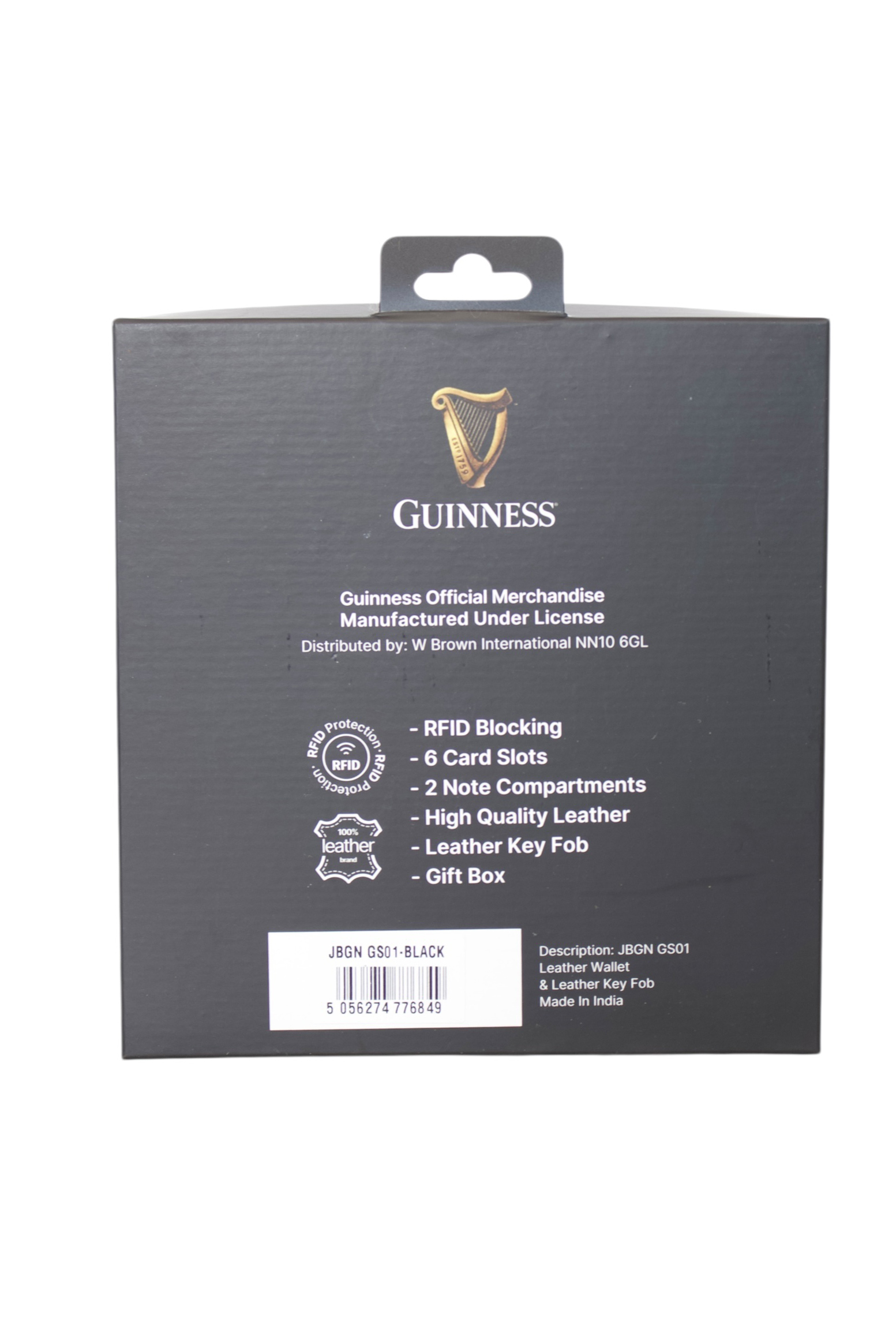 Gift box: novčanik muški kožni 120x90x20 mm i kožni privezak GS01 Guiness crna Guiness