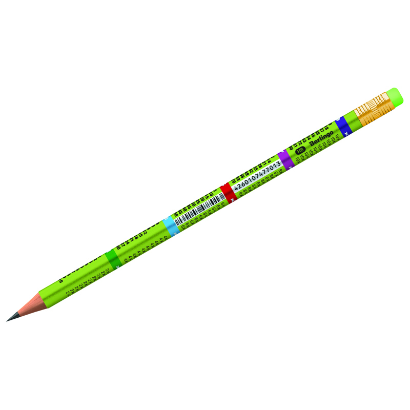 Grafitna olovka napravljena od kvalitetnog drveta sa grafitom mekoće HB, i tablicom množenja na telu. Gumica na vrhu .