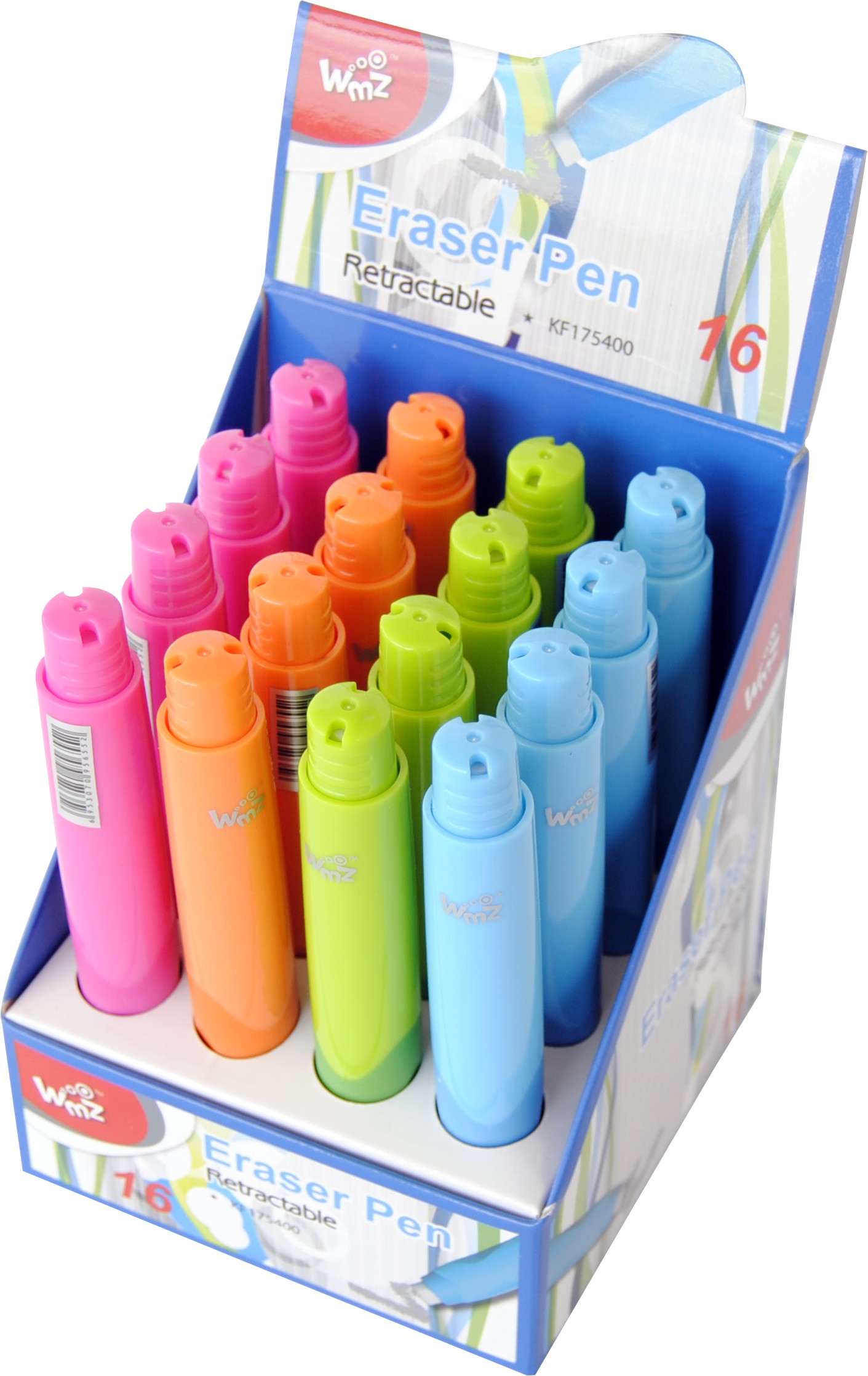 Gumica u olovci, vedrih boja. Istiskuje se iz kućišta uz pomoć "klik" mehanizma, kao tehnička olovka. Boje: roze, narandžasta, zelena i plava.