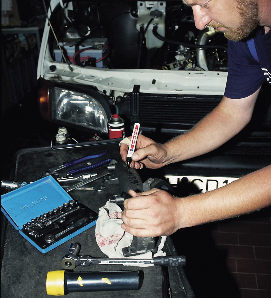 Specijalni marker sa visokopermanentnim mastilom- Široko se koristi u industriji nafte i gasa, metalurgiji i preradi metala; takođe pogodan za vlažnu klimu. Trajan, otporan na habanje i svetlo. Visoko efikasno mastilo ostavlja tragove čak i na blago zauljenim ili masnim površinama. Čak i u uslovima visoke vlažnosti, ova marker i dalje piše jasno i čitko - što ga čini savršenim proizvodom kod kuće za spoljne oznake. Visokokvalitetni brendirani proizvod, proizveden u Nemačkoj.