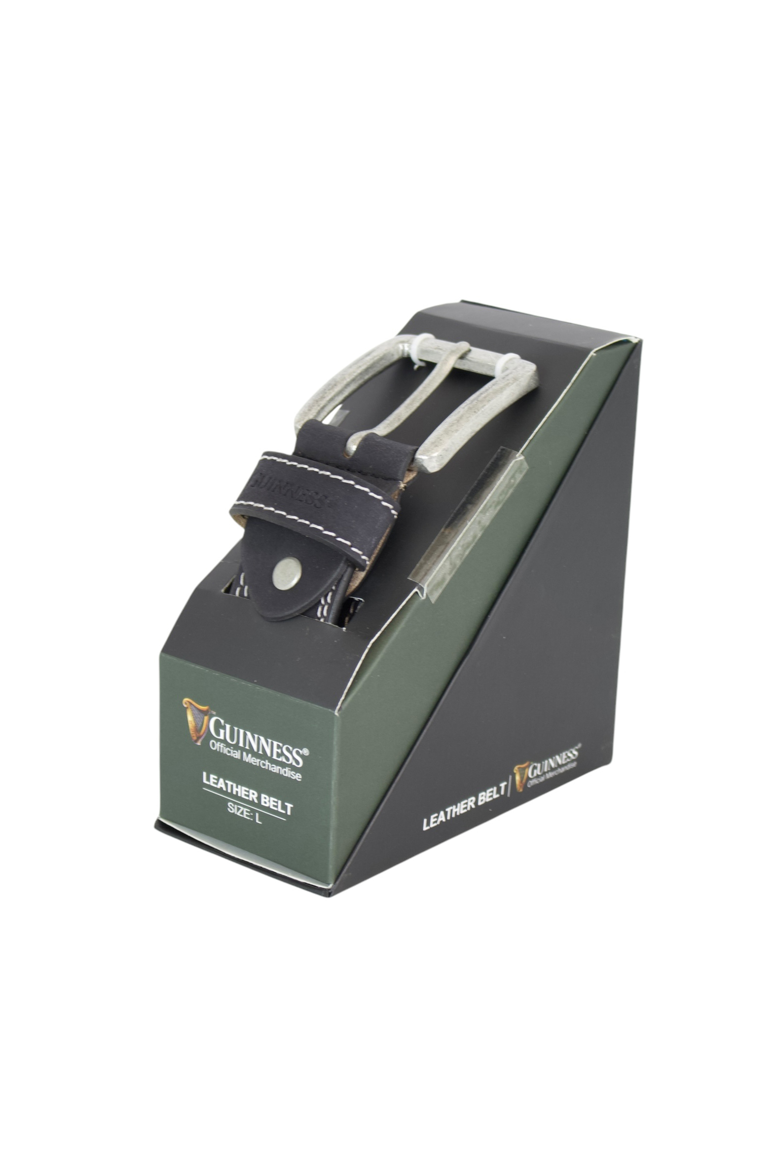 Kaiš muški kožni u poklon kutiji sa belim koncem BT01 Guiness M veličina crno-belo Guiness