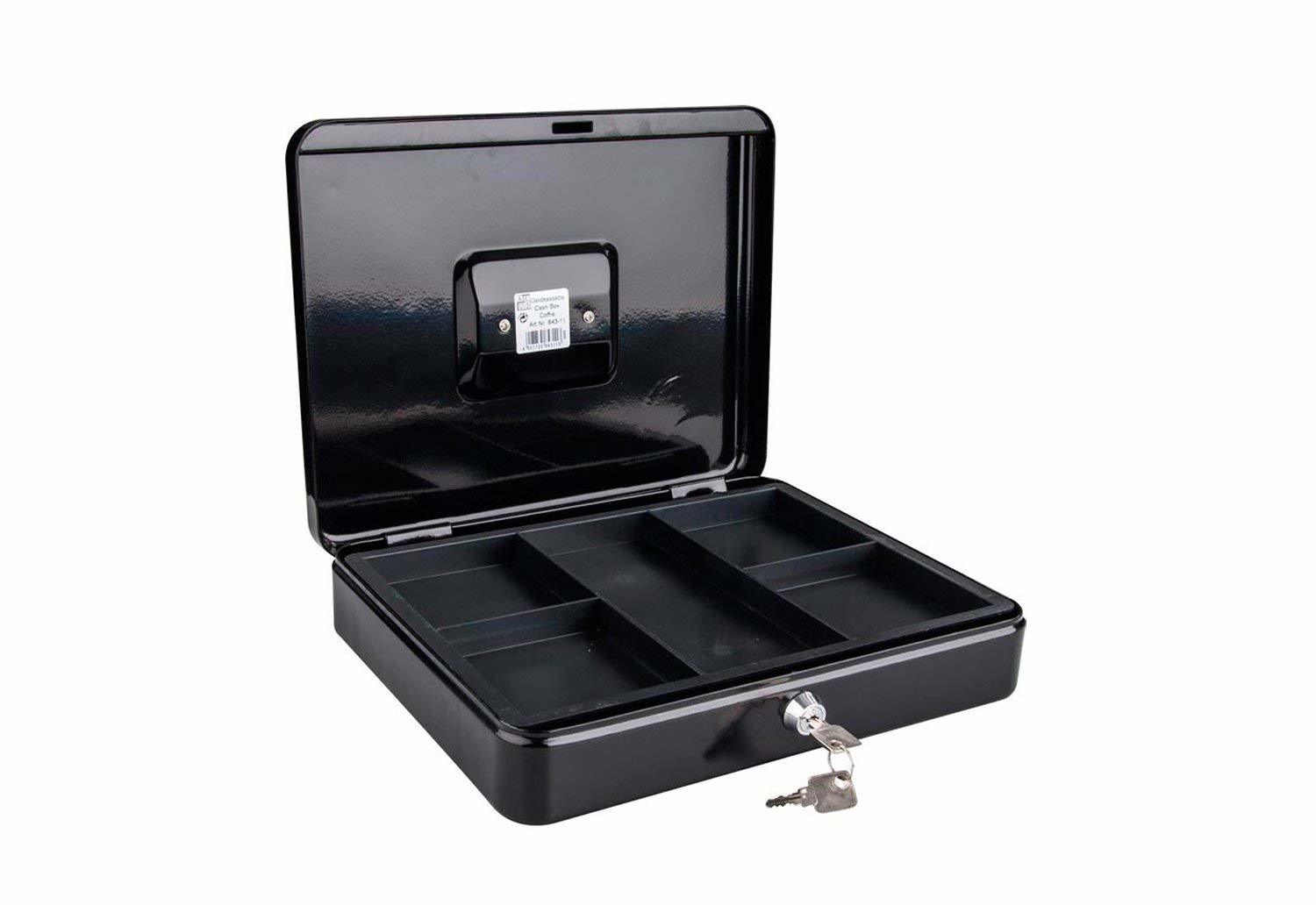 Prenosive kase za sigurno odlaganje novca ili važnih dokumenata. Kućište je izrađeno od čelika, a svaka kasa ima plastični uložak za sortiranje novčanica.