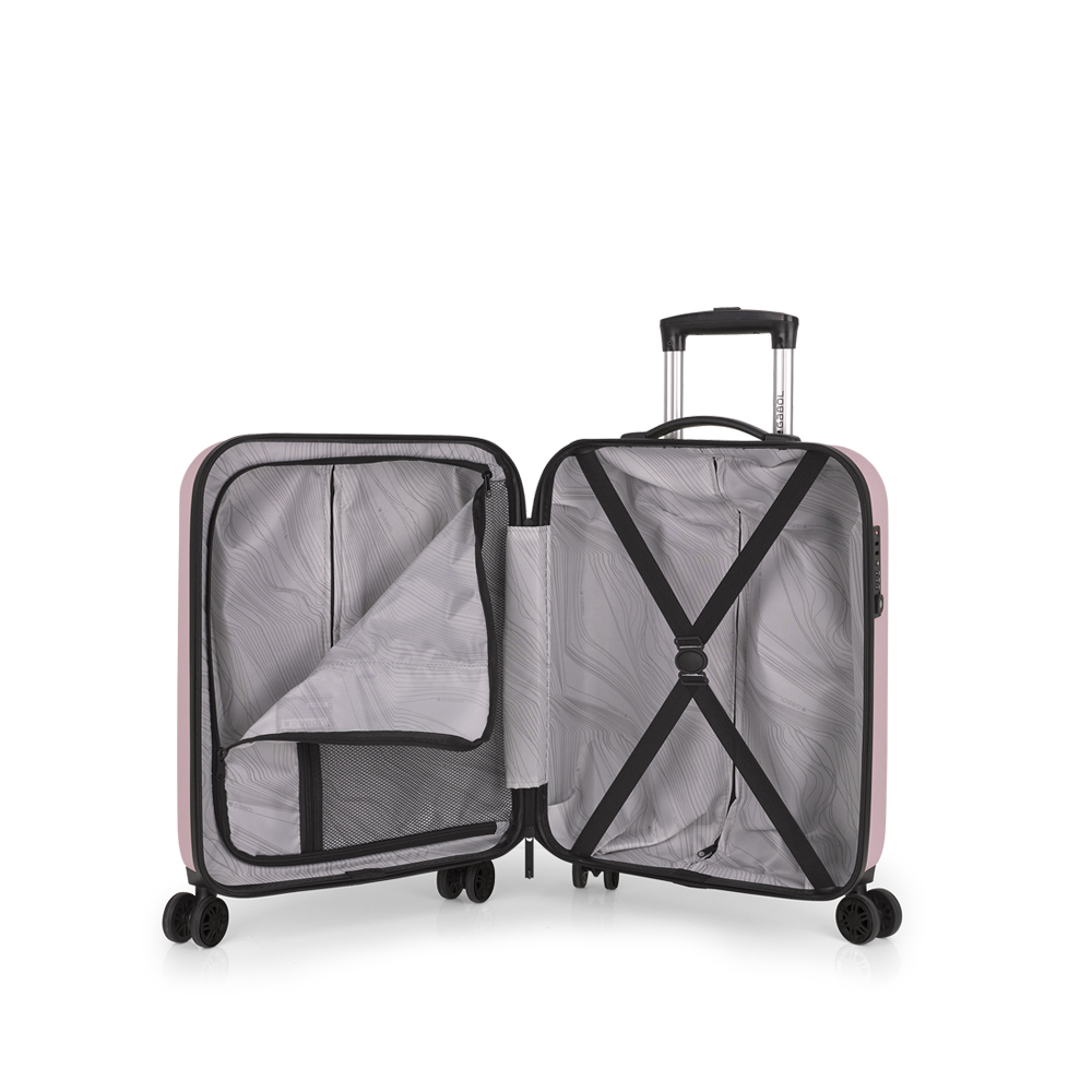 Kabinski kofer od ABS-materijala, sa četiri dupla točkića i TSA bravom. Unutrašnjost ima separatore, sa rajsferšlusom i strap trakom. Kvalitetna teleskopska ručka. Najpopularnija Gabol kolekcija je sada PROŠIRIVA. Nekoliko atraktivnih boja.