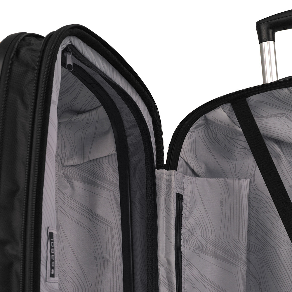 Kabinski kofer od ABS-materijala, sa četiri dupla točkića i TSA bravom. Unutrašnjost ima separatore, sa rajsferšlusom i strap trakom. Kvalitetna teleskopska ručka. Najpopularnija Gabol kolekcija je sada PROŠIRIVA. Nekoliko atraktivnih boja.