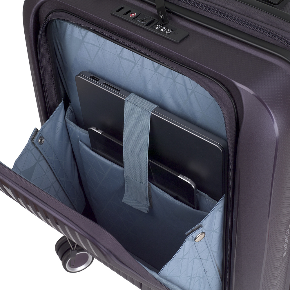 Ubedljivo najbolje organozovan model kabinskog kofera za kraća putovanja. Izradjen je od polipropilena, materijala koje elastičniji i samim tim otporniji na udarce od klasičnog ABS-a. Na prednjoj strani kofera nalazi se posebna pregrada sa tri odeljka: za laptop, za tablet i poslovne dokumente koji mogu biti i poverljive sadržine. Taj deo je zaštićen o kradje sigurnosnom sajlom. Svaka polovina kofera ima sopstveno zip zatvaranje, a na jednoj se nalaze i dve dodatne zip pregrade za sitnice. Teleskopska ručka ima tri položaja, čime je omogućeno potpuno prilagođavanje po visini. TSA brava se nalazi na gornjoj strani kofera i istovremeno obezbeđuje osiguranje prednjeg pregratka uz momoć sigurnosnih sajli.