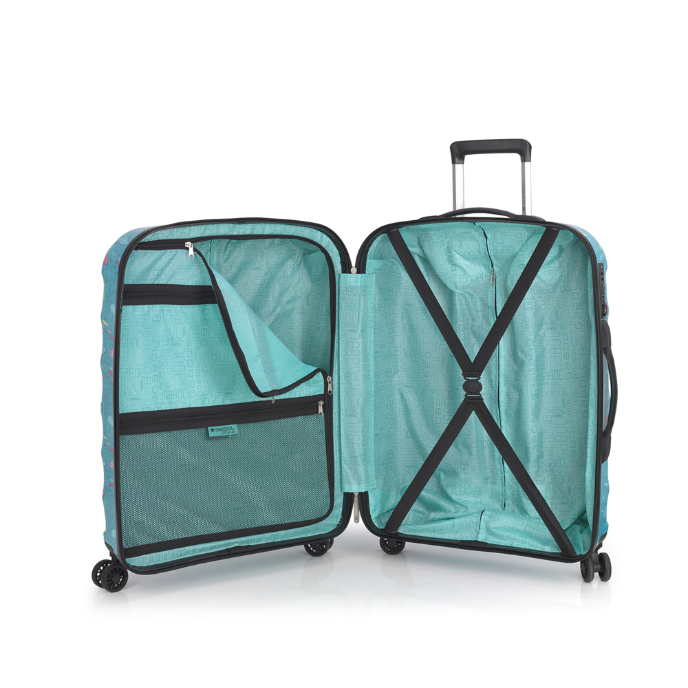 Dečji kofer srednje veličine izrađen od kombinacije ABS-a i polikarbonata, što mu daje veću čvrstinu, sa četiri dupla točkića i TSA bravom. Unutrašnjost ima separatore, sa rajsferšlusom i strap trakom. Kvalitetna teleskopska ručka. Dizajniran dečijim morskim dezenom kombinacijom ribica, školjkica isl..