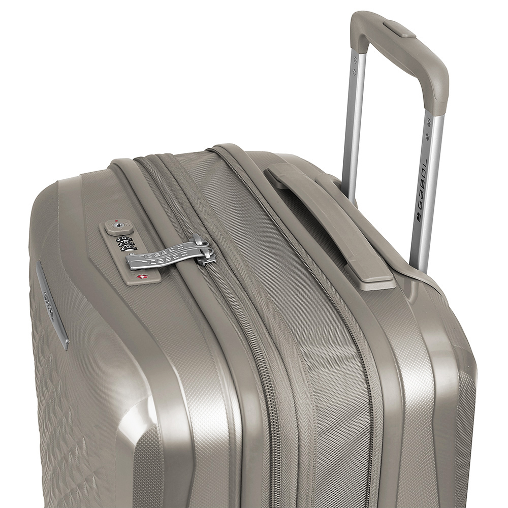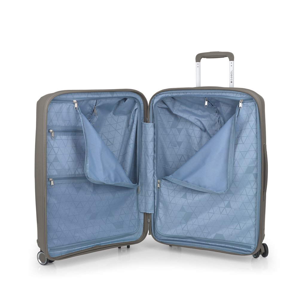Izuzetno atraktivna kolekcija Queens izrađena je od polipropilena, materijala koji je elastičniji i samim tim, otporniji na udarce od klasičnog ABS-a. Unutrašnjost, tj. tekstilni delovi su od recikliranog materijala. Svaka polovina kofera ima sopstveno zip zatvaranje, a na jednoj se nalaze i dve dodatne zip pregrade za sitnice. Po potrebi se može proširiti za skoro 8 litara, odnosno 3 cm. Kvalitetna teleskopska ručka ima 3 stepena podešavanja po visini. Garancija na eventualne fabričke greške je 2 godine, a na točkiće čak 10 godina (takođe se odnosi na fabričku nesaobraznost proizvoda) Elegantan dizajn i metalik boje čine ovu kolekciju zaista posebnom.