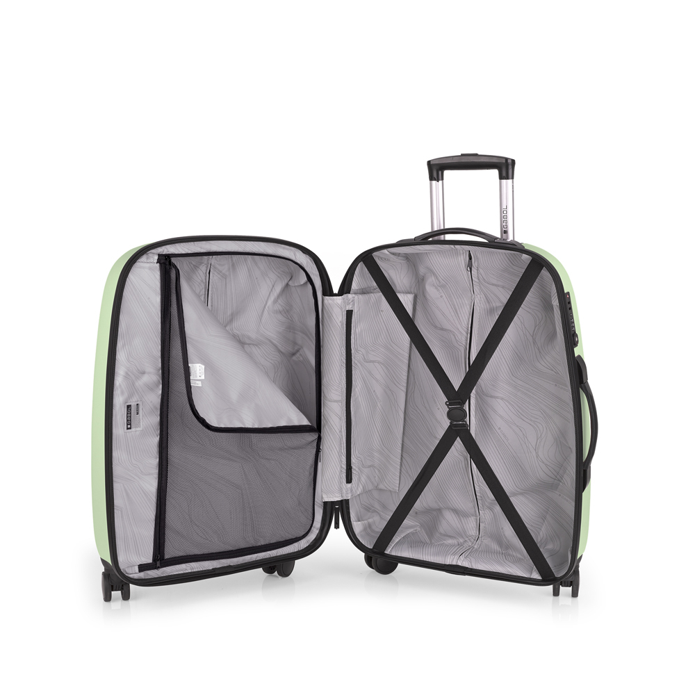 Kofer srednje veličine od ABS-materijala, sa četiri dupla točkića i TSA bravom. Unutrašnjost ima separatore, sa rajsferšlusom i strap trakom. Kvalitetna teleskopska ručka. Najpopularnija Gabol kolekcija je sada PROŠIRIVA. Veliki broj atraktivnih boja.