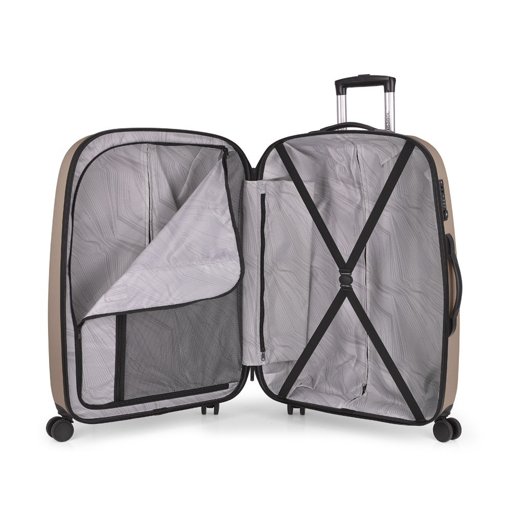 Veliki kofer od ABS-materijala, sa četiri dupla točkića i TSA bravom. Unutrašnjost ima separatore, sa rajsferšlusom i strap trakom. Kvalitetna teleskopska ručka sa 3 stepena podešavanja visine. Najpopularnija Gabol kolekcija je sada PROŠIRIVA. Veliki broj atraktivnih boja. .