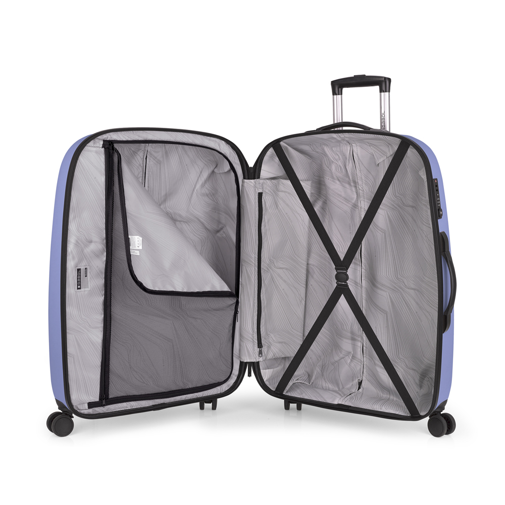 Veliki kofer od ABS-materijala, sa četiri dupla točkića i TSA bravom. Unutrašnjost ima separatore, sa rajsferšlusom i strap trakom. Kvalitetna teleskopska ručka sa 3 stepena podešavanja visine. Najpopularnija Gabol kolekcija je sada PROŠIRIVA. Veliki broj atraktivnih boja.