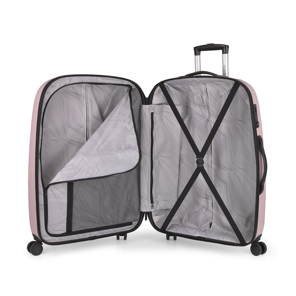 Veliki kofer od ABS-materijala, sa četiri dupla točkića i TSA bravom. Unutrašnjost ima separatore, sa rajsferšlusom i strap trakom. Kvalitetna teleskopska ručka sa 3 stepena podešavanja visine. Najpopularnija Gabol kolekcija je sada PROŠIRIVA. Veliki broj atraktivnih boja.