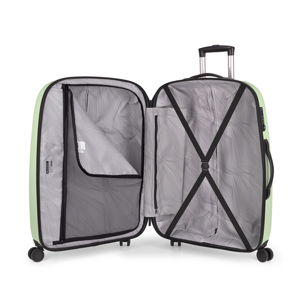 Veliki kofer od ABS-materijala, sa četiri dupla točkića i TSA bravom. Unutrašnjost ima separatore, sa rajsferšlusom i strap trakom. Kvalitetna teleskopska ručka sa 3 stepena podešavanja visine. Najpopularnija Gabol kolekcija je sada PROŠIRIVA. Veliki broj atraktivnih boja.