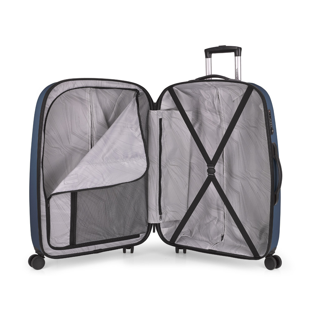 Veliki kofer od ABS-materijala, sa četiri dupla točkića i TSA bravom. Unutrašnjost ima separatore, sa rajsferšlusom i strap trakom. Kvalitetna teleskopska ručka sa 3 stepena podešavanja visine. Najpopularnija Gabol kolekcija je sada PROŠIRIVA. Veliki broj atraktivnih boja.