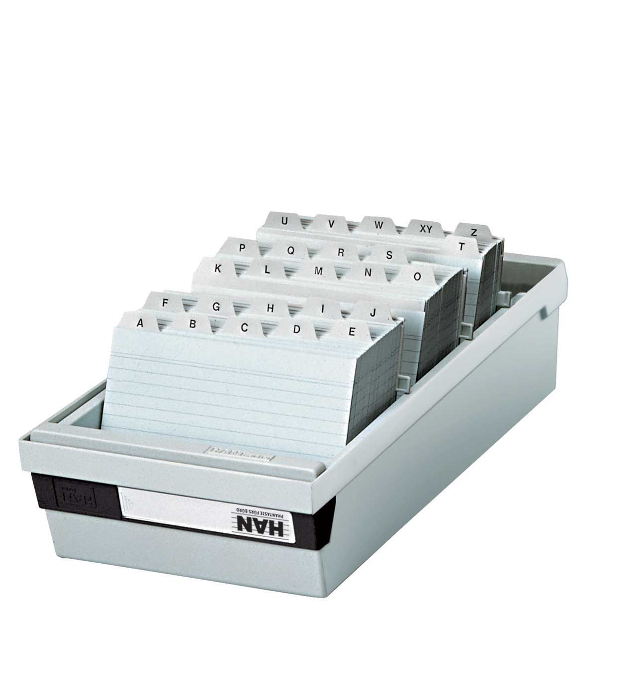Kutija za indexne kartice otvorenog tipa, izrađena od visokokvalitetne plastike (polistiren PS). Koristi se za format kartice: DIN A5. Kapacitet: 1300 kartica. Odgovara većini fioka stola.
