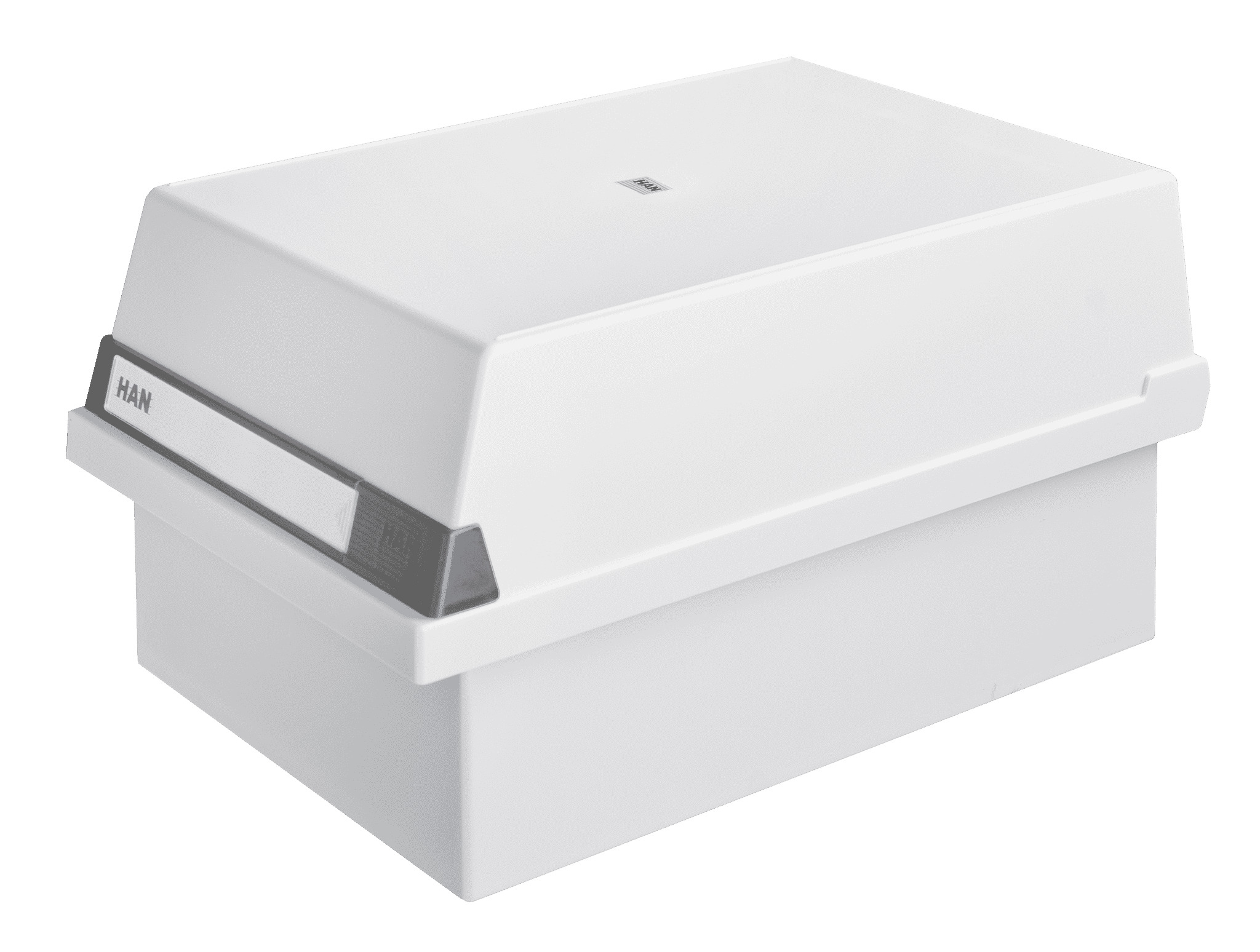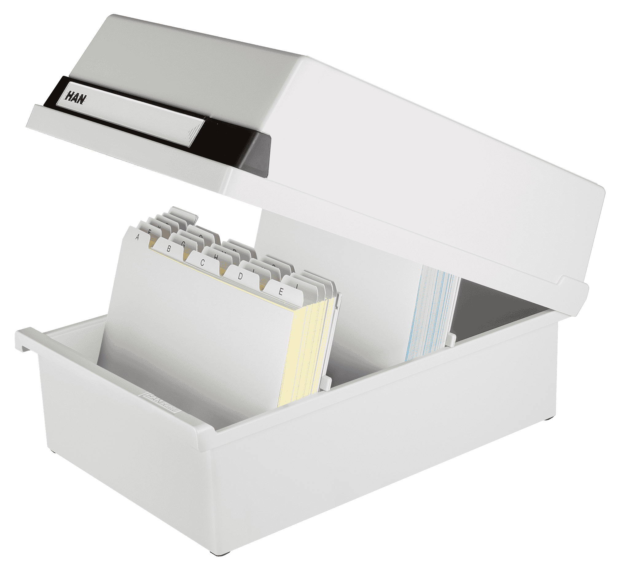 Kutija za indexne kartice izrađena od visokokvalitetne plastike (polistiren PS). Koristi se za format kartice: DIN A5. Zahvaljujući poklopcu zaštita od prašine je zagarantovana. Kapacitet: 1300 kartica.