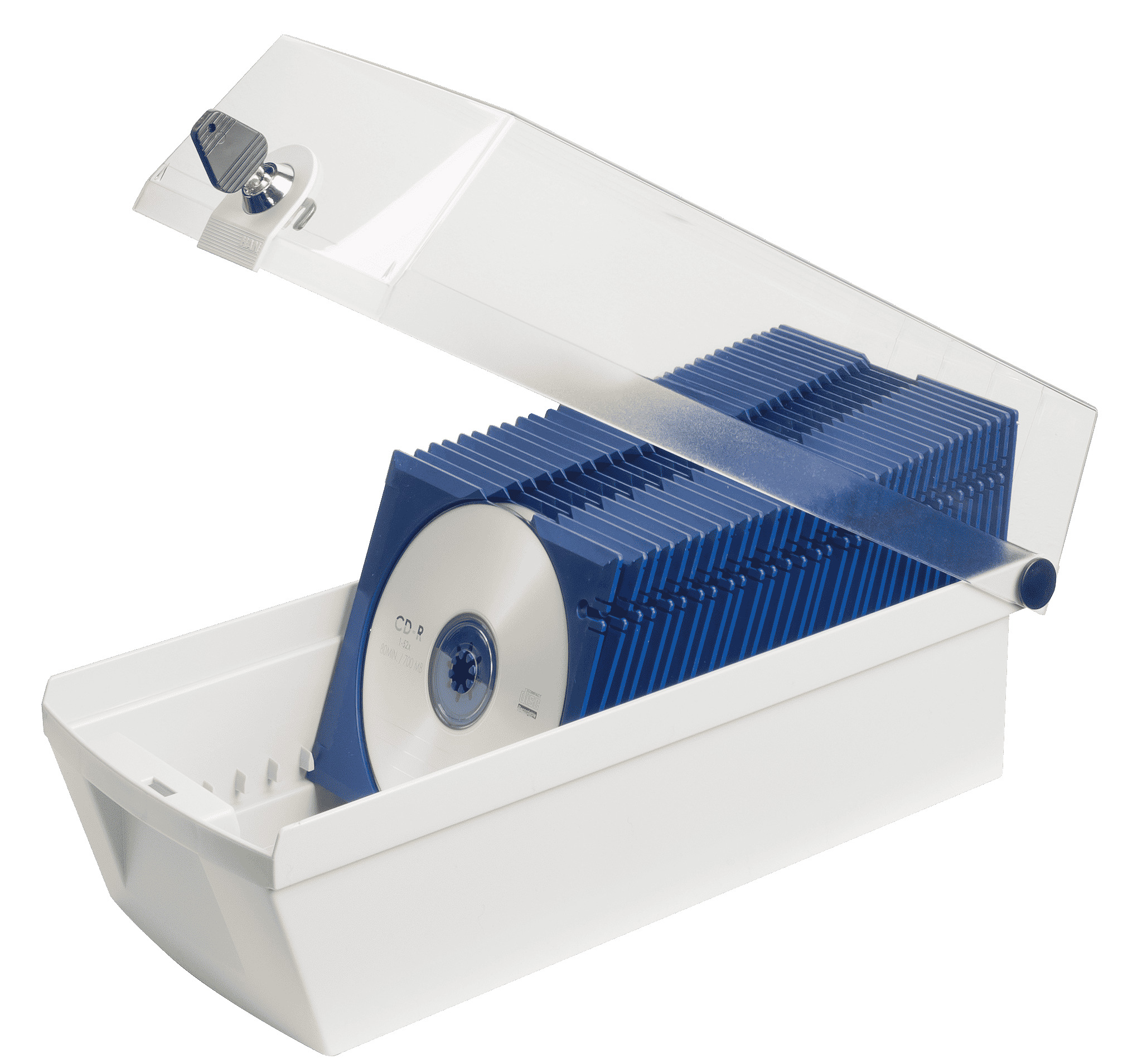 HAN kutija za CD/DVD sa metalnom bravom koja se može zaključati. Najbolja zaštita od prašine i ogrebotina, čime se obezbeđuje bezbedno skladištenje pojedinačnih CD/DVD-ova. Maksimalan kapacitet: 60 CD-a/DVD-a. Izrađena je od visokokvalitetne plastike (polistiren PS).