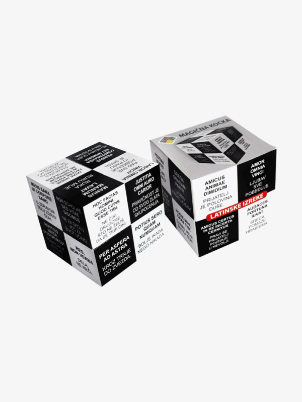 Filteri < Nazad Home>Katalog>Igračke>Puzzle> Magična kocka LATINSKE IZREKE Šifra: 15MK15 Šifra proizvođača: 13.11.00 Bar kod: 8606106681406 Možda vas interesuje Magična kocka ZALJUBLJENI MEDA Šifra: 15MK04 Bar kod: 8606106681123 Magična kocka bajka PEPELJUGA Šifra: 15MK07 Bar kod: 8600103472463 Magična kocka TAJNE USPEHA Šifra: 15MK16 Bar kod: 8606106681413 Magična kocka ŠALJIVE PORUKE Šifra: 15MK02 Bar kod: 8600103472494