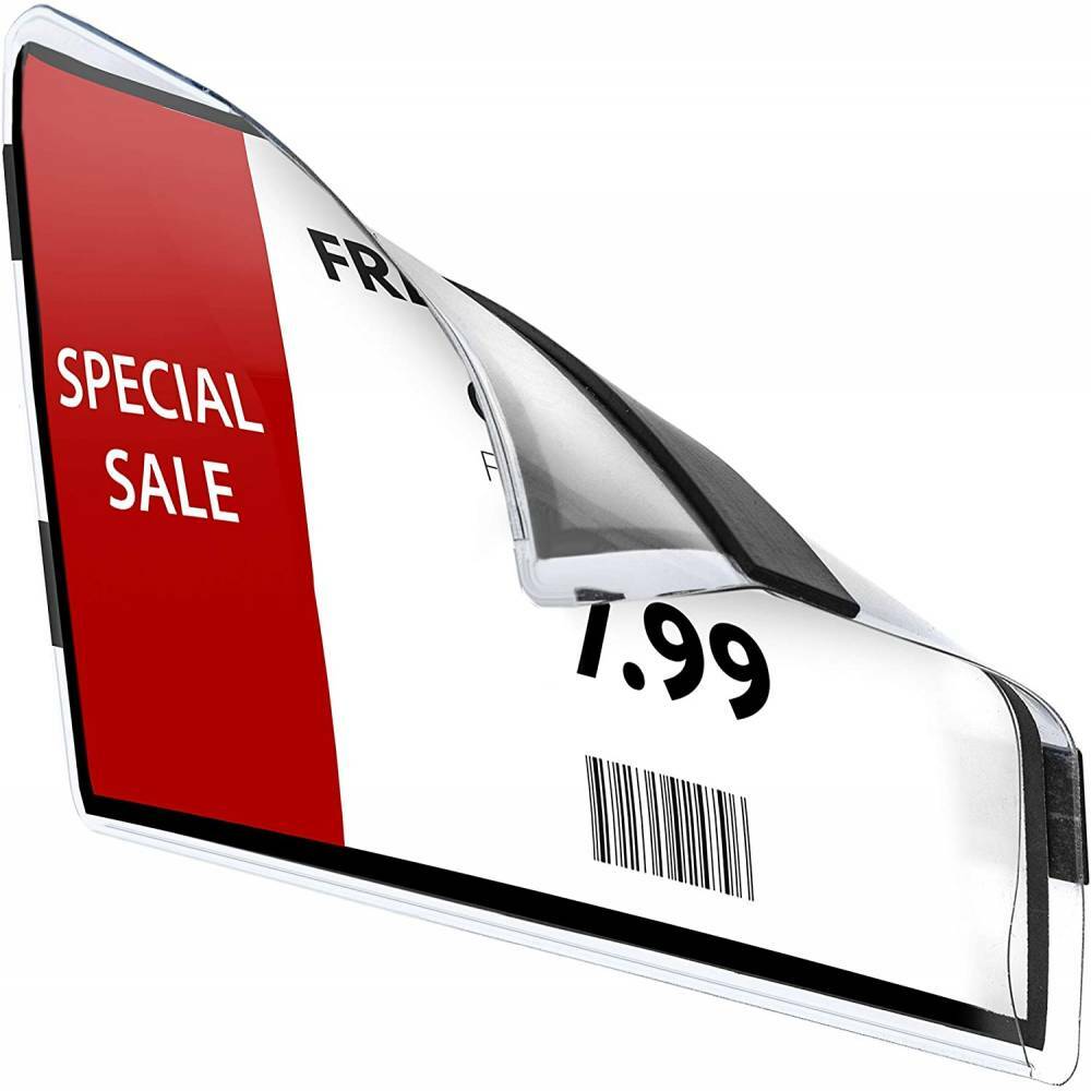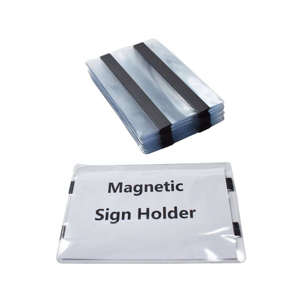 Potpuno providni PVC džep sa dve magnetne tračice za efikasno označavanje na metalnim policama.