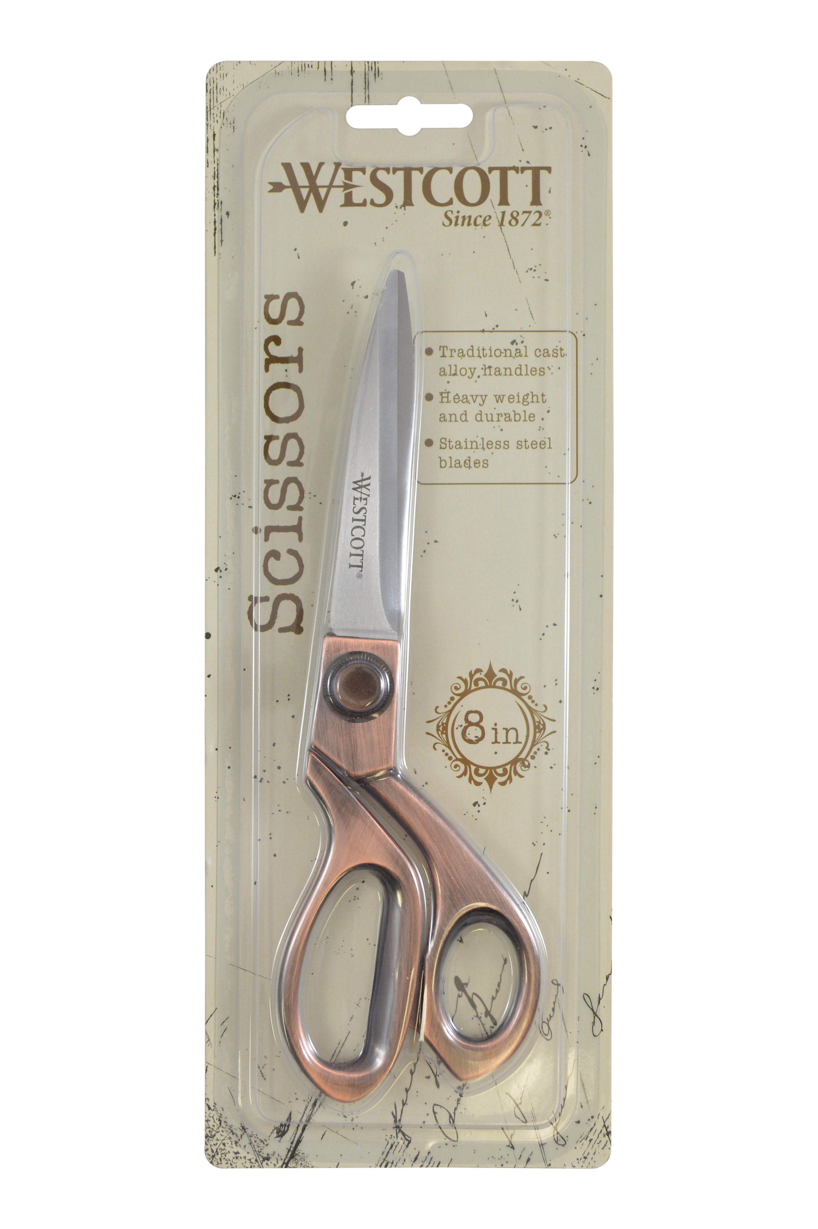 "Vintage" Makaze duge 20,4 cm. Oštrice od nerđajućeg čelika duge 9 cm. Ergonomska ručka u jedinstvenom, retro bakrenom izgledu udobno leži u ruci i omogućuje precizan rad. Dug vek trajanja. Za najrazličitije primene.