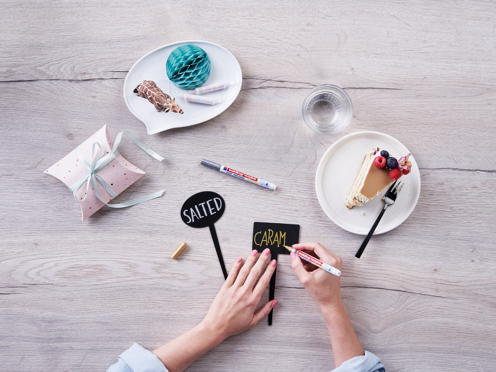 Olovka u obliku markera napunjena tečnim "kreda" mastilom je mnogo lakša za rukovanje nego tradicionalna kreda - i nema više neurednih ruku. Sa ovim tzv. "kreda-markerima" kreiranje profesionalnih, modernih slova je zaista lako. Postoji 20 živopisnih boja koje možete izabrati, uključujući 2 koje svetle pod UV svetlom: neon-narandžastu i neonsko-ružičastu. Koristite finu širinu poteza za te dodatne male dodire i pisanje na malim površinama uskim fontom. Kreda markeri Edding su popularni za natpise u restoranima, maloprodajnom sektoru i auto-salama - zapravo, svuda gde je potreban precizan dizajn. Unutar doma prozori i druge površine mogu se ukrašavati tokom cele godine i za svaku priliku. Crtanje može biti ili slobodnom rukom ili uz pomoć šablona: pričvrstite šablon na poleđinu prozora, izaberite boju, a zatim pređite preko motiva. Veb lokacija edding nudi širok spektar šablona za preuzimanje. Pre prve upotrebe, marker se mora aktivirati na sledeći način: prvo snažno protresite marker dok je poklopac još uvek postavljen, a zatim uklonite poklopac. Sa perom okrenutim nadole, nanesite olovku na komad papira za testiranje, pažljivo pritiskajući papir nekoliko puta dok mastilo ne popuni vrh. Marker je sada spreman za upotrebu. Nemojte previše pumpati pero jer to može dovesti do curenja mastila i mrlja. Ako su potrebne korekcije, jednostavno obrišite mastilo vlažnom krpom. Za osetljive materijale (npr. pleksiglas®), savetujemo prethodno testiranje na neupadljivom mestu. Čuvajte horizontalno. Proizvod visokog kvaliteta brenda.