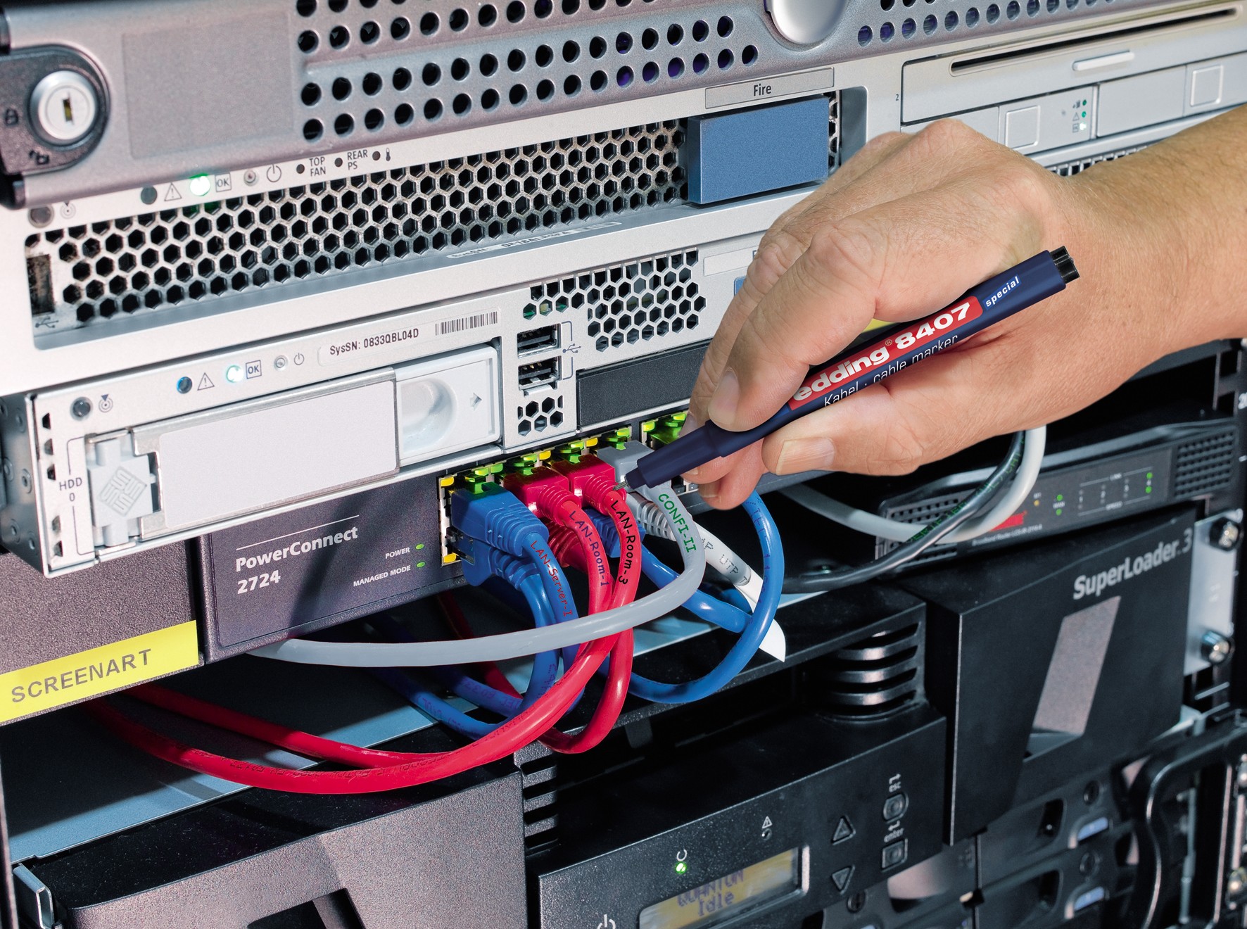 Kablovi prolaze kroz skoro svaku zgradu. Važno je da ne nastane haos, tako da je jasno obeležavanje kablova od suštinskog značaja za električare i radnike. Najfiniji vrh ove vrste osigurava da Edding 8407 marker postane prvi izbor za odgovarajuće obeležavanje kablova. Nema veze da li kablovi prolaze iznutra ili spolja, ovi trajni markeri, otporni na svetlo i vlagu rešavaju problem. A pošto su za pravilno označavanje potrebne odgovarajuće boja, markeri dolaze u setu od četiri različite boje.