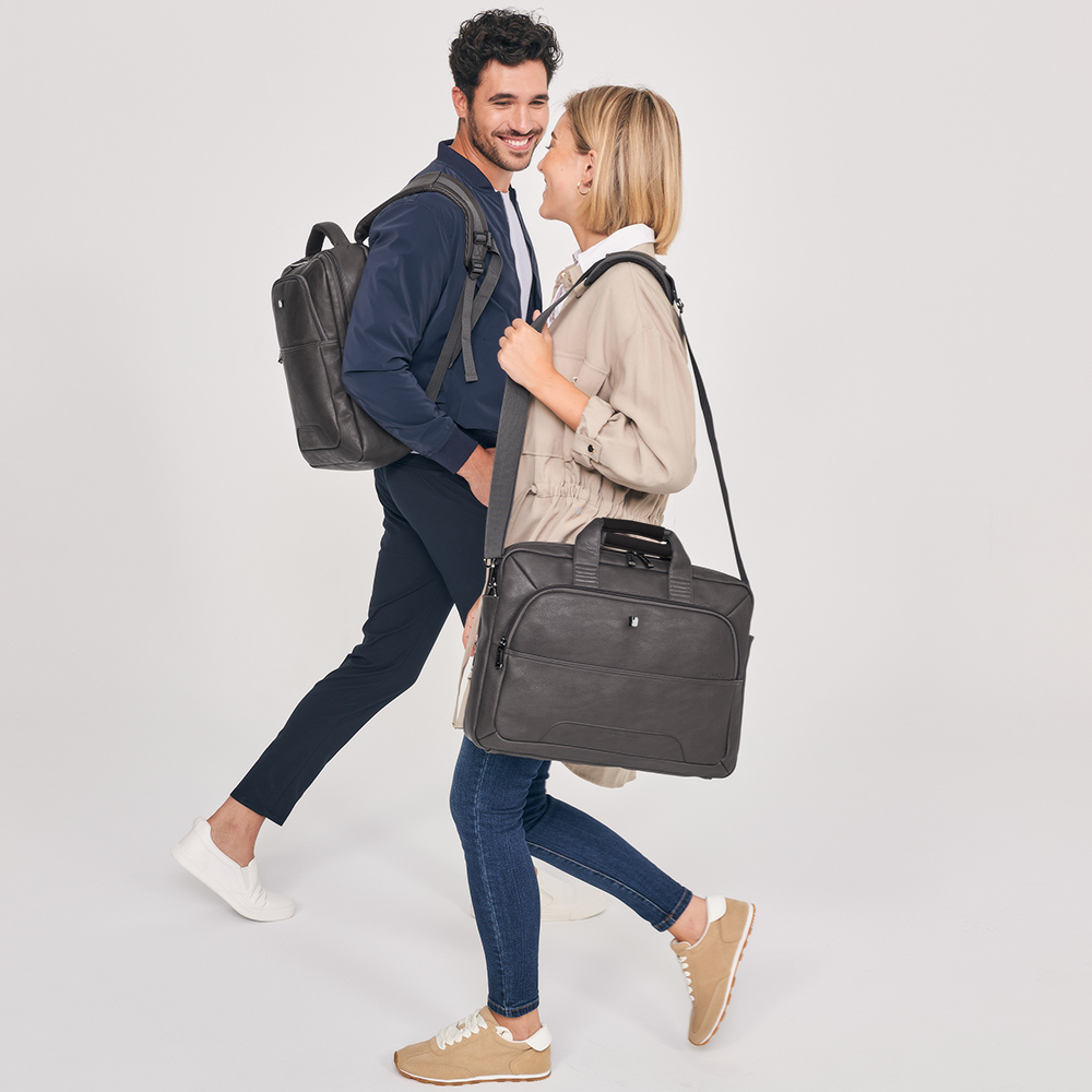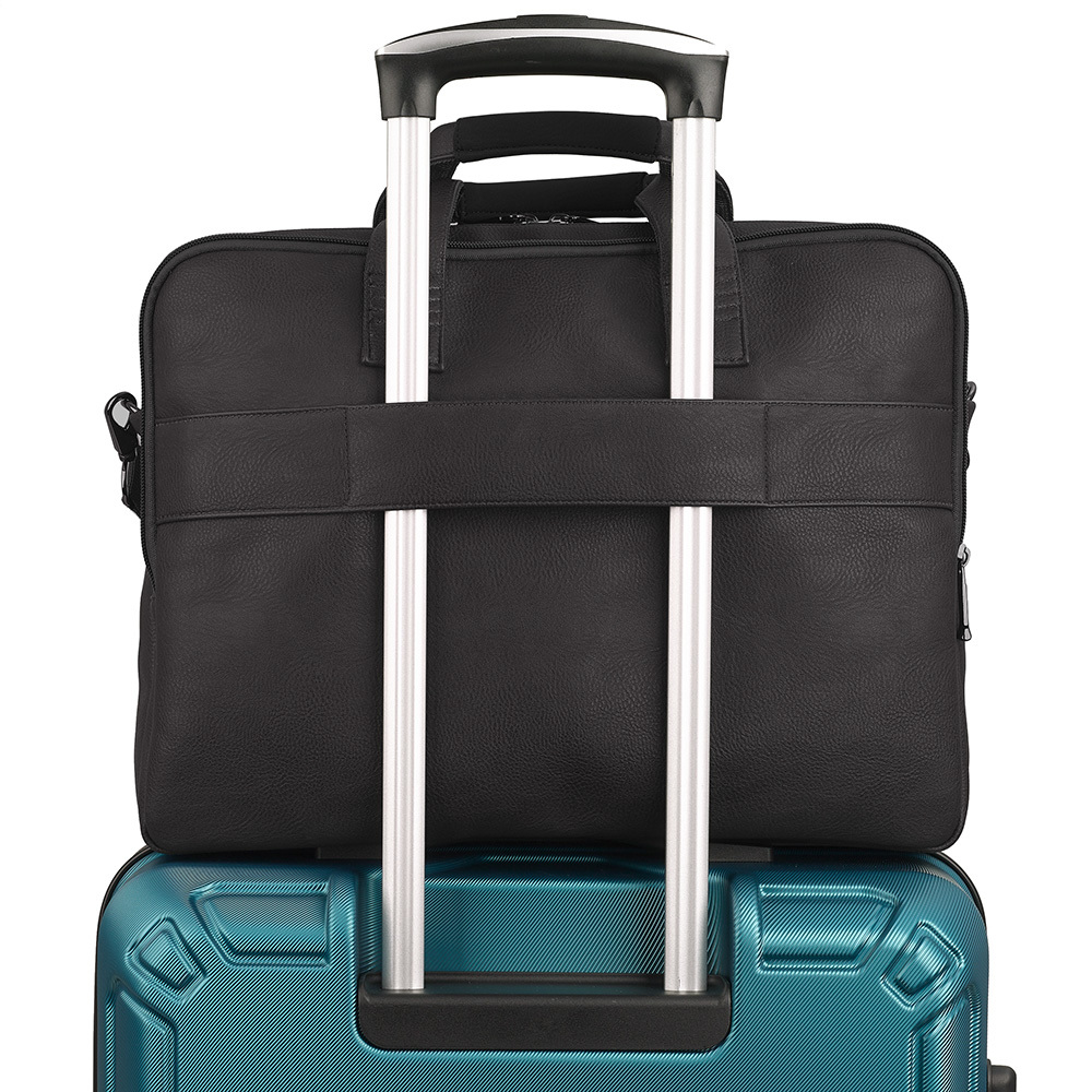 Elegantna i moderna muška torba za notebook, izrađena od visokokvalitetne veštačke kože, sa "PVC free" oznakom. Sadrži dva unutrašnja odeljka, uključujući i zaštićeni prostor za odlaganje kompjutera 15,6".na prednjoj strani se nalazi veliki džep sa rajsferšlusom. Moguća je montaža na ručku kofera.