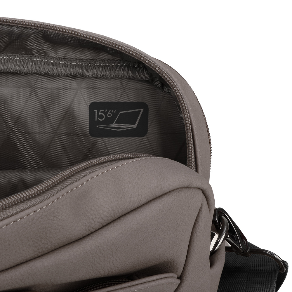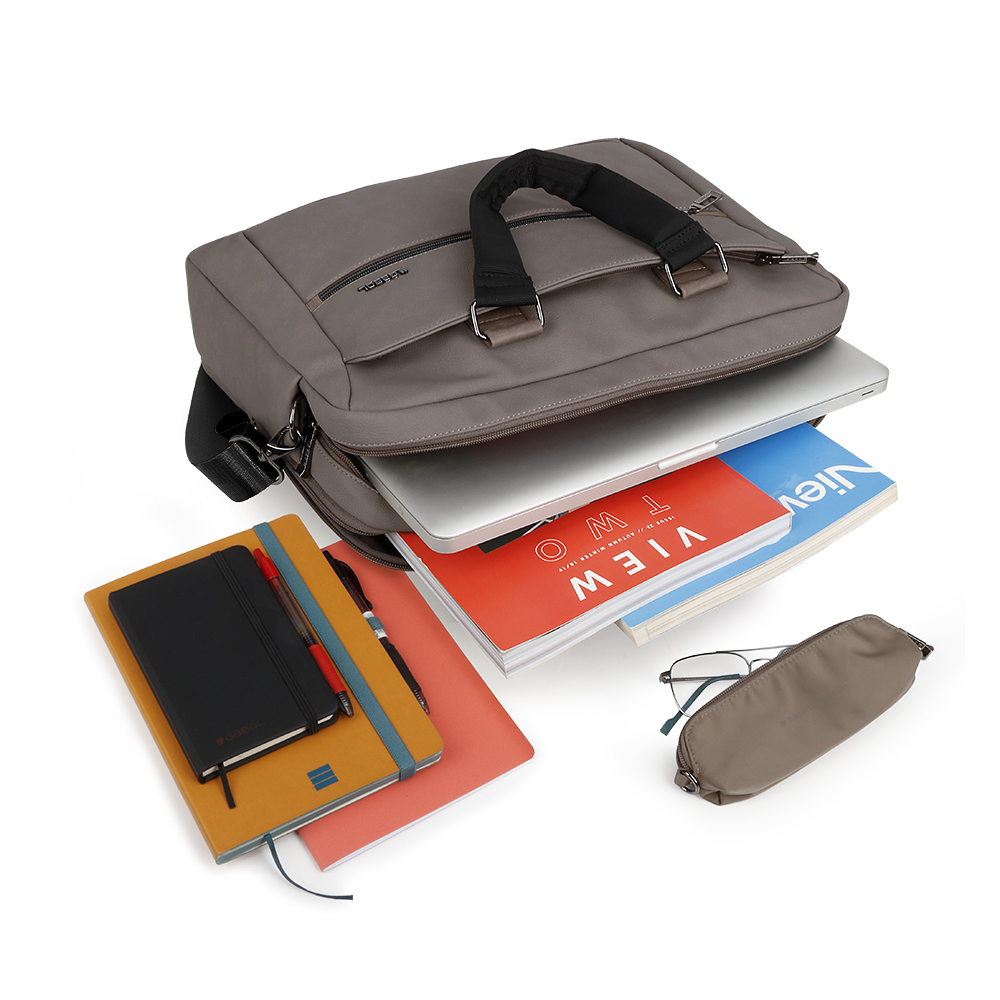 druga pregrada za odlaganje dokumenata i ličnih stvari, treca pregrada se nalazi sa spoljašnje strane. Dimenzija 42x31x9 cm, boja bež, kapacitet 10,08l, težina prazne torbe 0,92 kg.