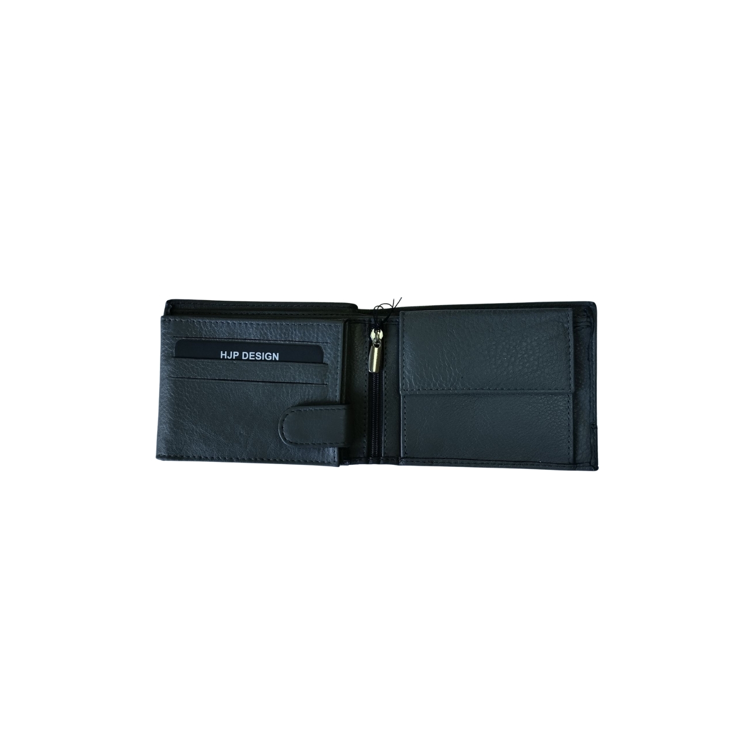 Klasičan muški preklopni kožni novčanik sa RFID zaštitom, interesantnog dizajna, štepan koncem u boji. Pored glavne pregrade za novac, poseduje pregradu za sitan novac i pregrade za kartice i lična dokumenta. Položena orijentacija.