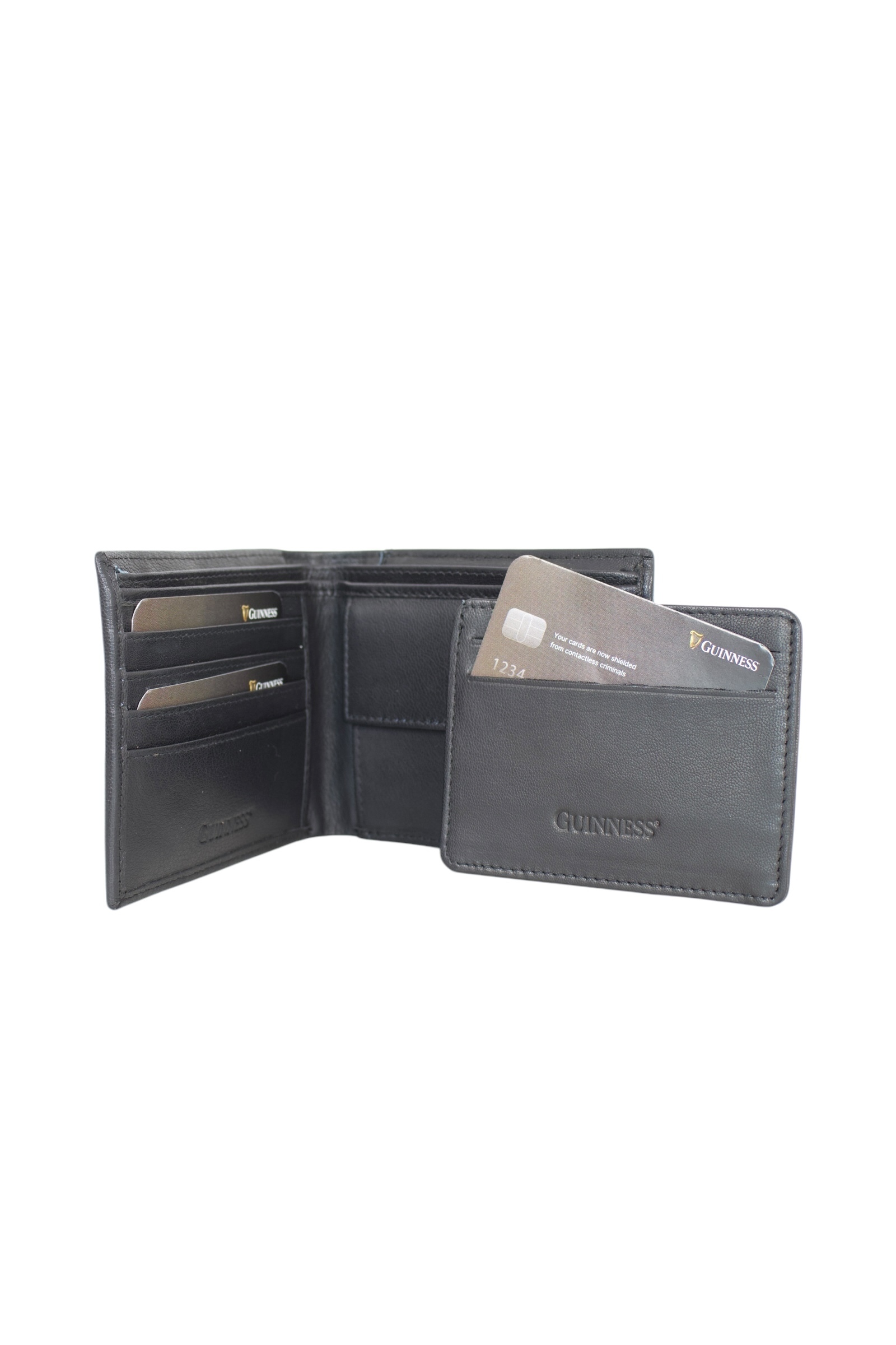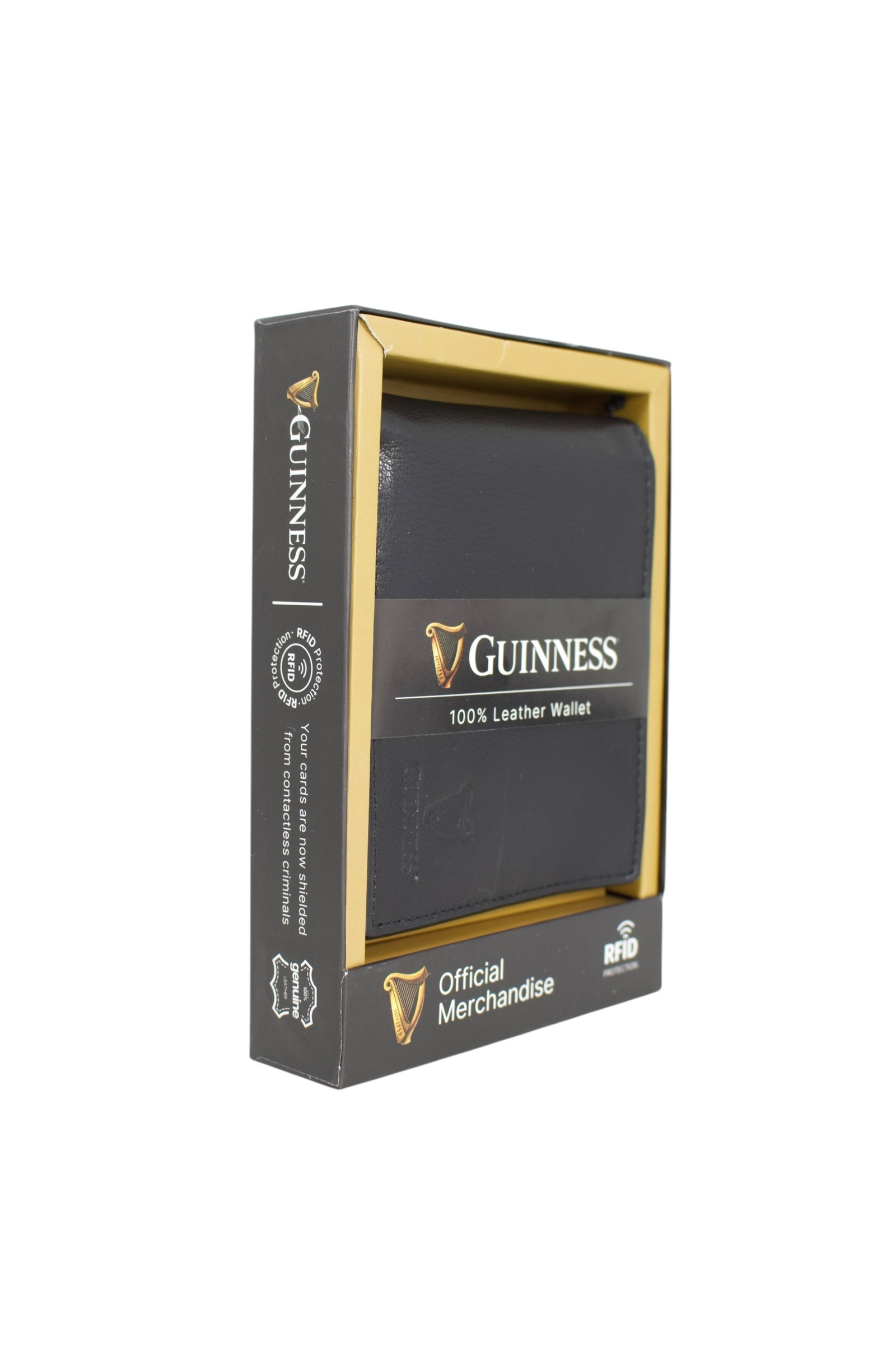 Premijum Guinness novčanik izrađen je od 100% prirodne kože visokog kvaliteta, što mu osigurava prepoznatljivu teksturu i izuzetnu dugovečnost u svakodnevnoj upotrebi. Unutrašnjost nudi superiornu organizaciju sa dva odeljka za novčanice, osam pregrada za kartice i praktičnim džepom za kovanice. Posebna prednost ovog modela je inovativni odvojivi držač za kartice koji omogućava dodatnu fleksibilnost, dok integrisana RFID zaštita garantuje potpunu bezbednost digitalnih podataka. Uz diskretno reljefno brendiranje i luksuzno pakovanje, ovaj model predstavlja savršen balans između tradicionalne elegancije zvanične Guinness kolekcije i savremenih sigurnosnih standarda.