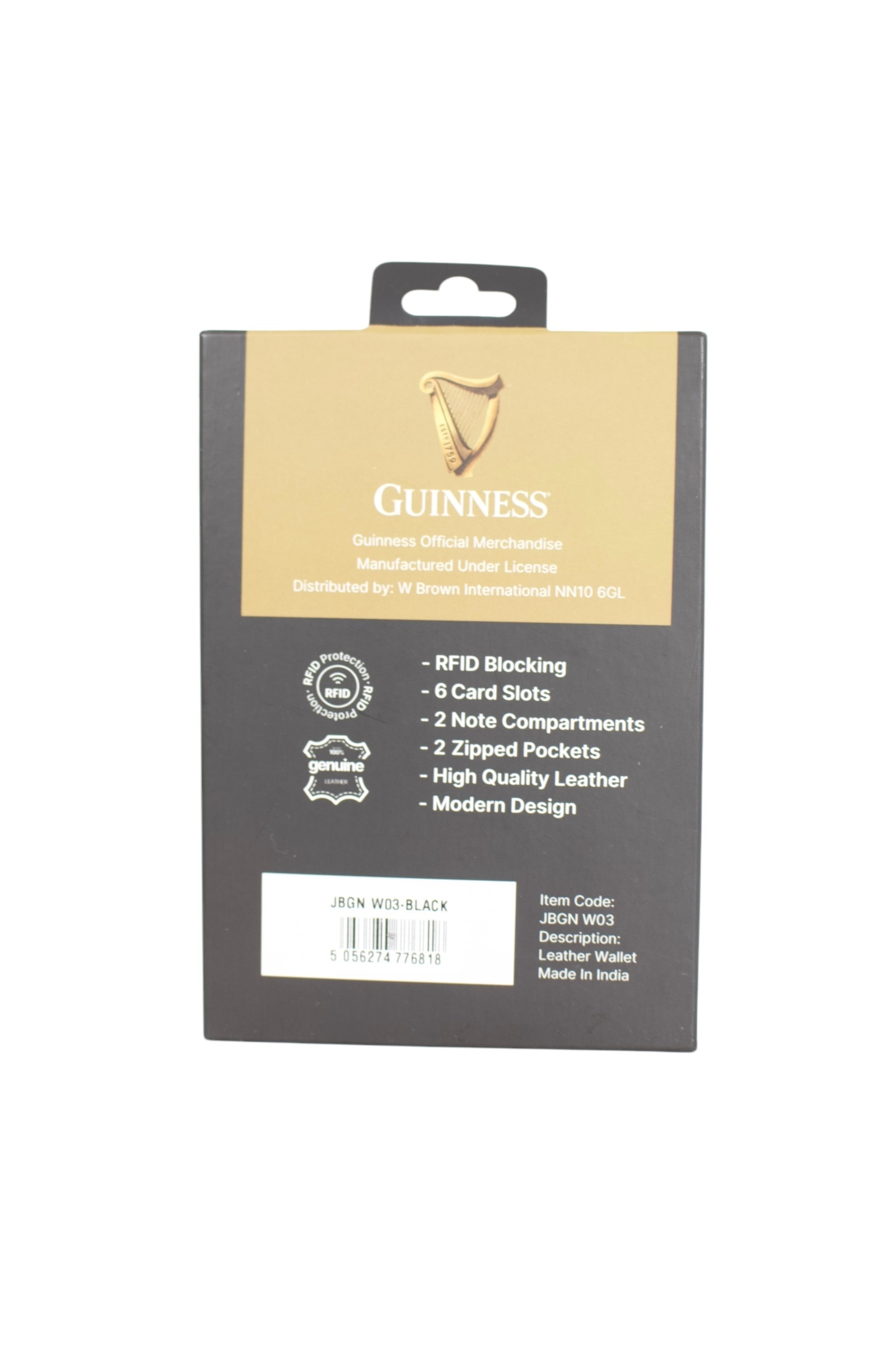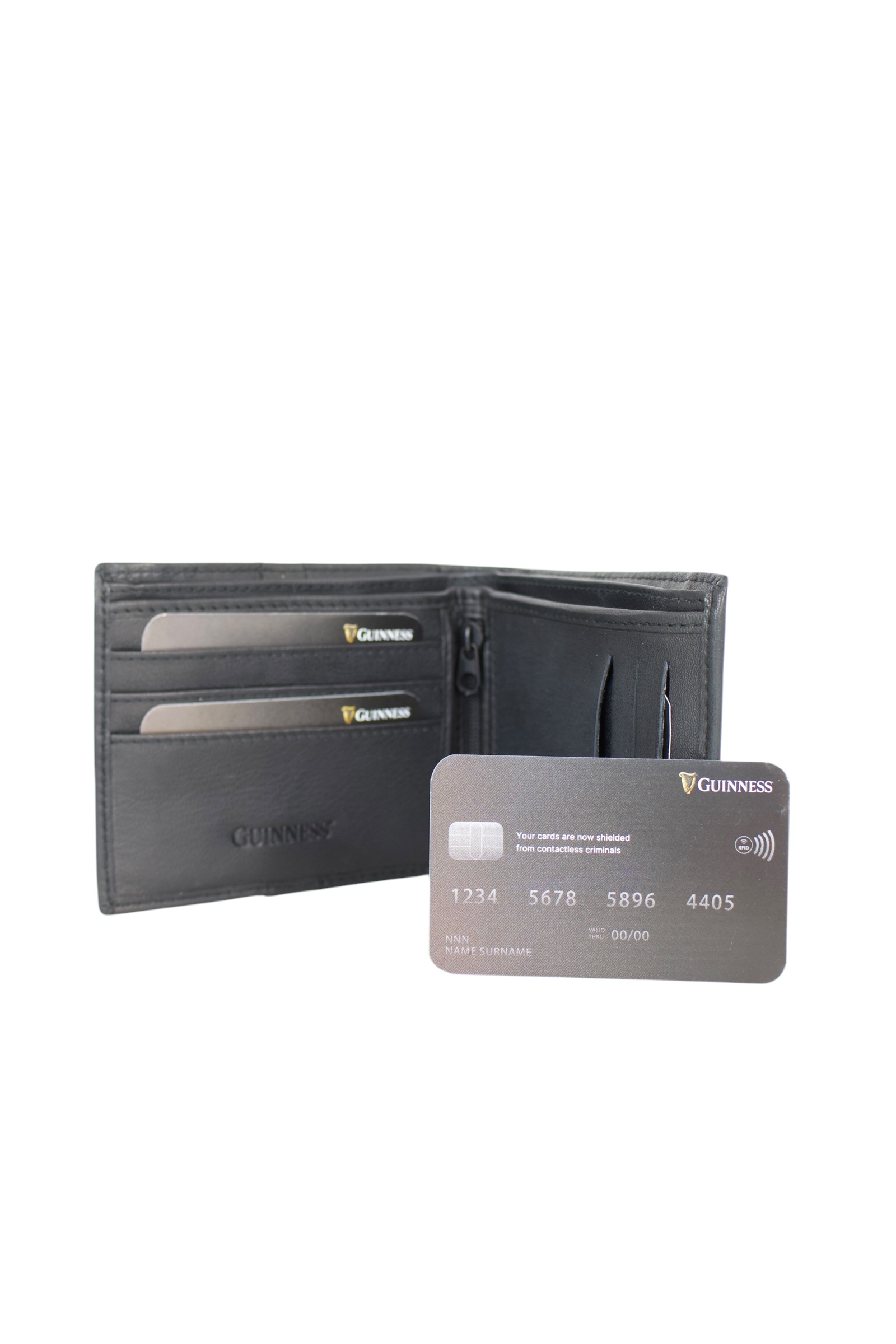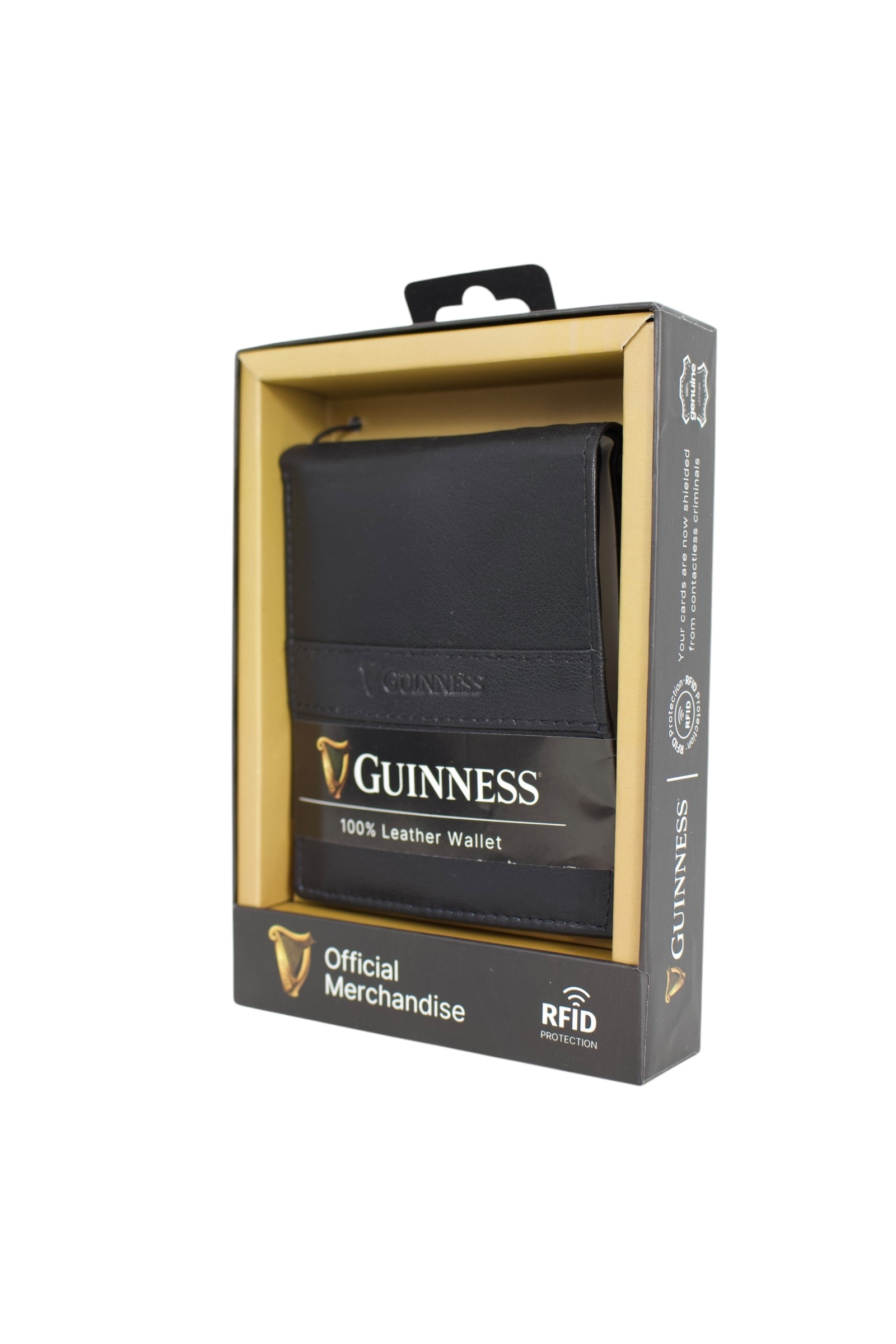 Moderni Guinness novčanik predstavlja spoj vrhunskog zanatskog umeća i visokokvalitetne prirodne kože, pružajući prepoznatljiv estetski identitet i izuzetnu dugotrajnost. Unutrašnjost je pametno organizovana kroz dva prostrana odeljka za novčanice, šest pregrada za kartice i dva namenska džepa sa patent zatvaračem za maksimalnu sigurnost sitnica. Bezbednost digitalnih podataka osigurana je integrisanom RFID zaštitom, dok savremena linija dizajna i suptilni reljefni detalji čine ovaj model idealnim aksesoarom za svaku priliku. Dolazi u luksuznom pakovanju Guinness Official Merchandise linije, što dodatno naglašava ekskluzivnost i kvalitet ovog autentičnog kožnog proizvoda.