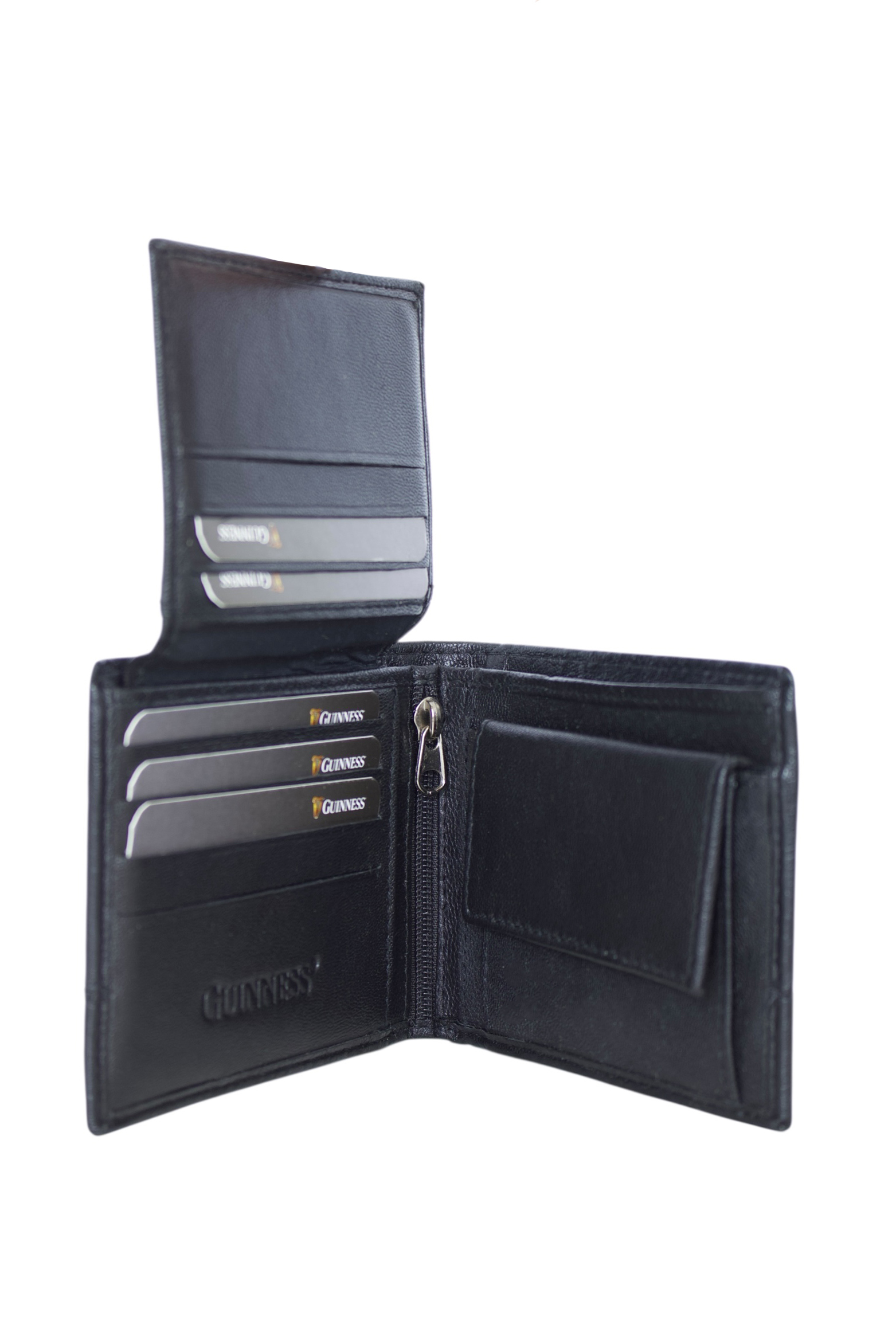 Premijum kožni novčanik brenda Guinness izrađen je od 100% prirodne kože vrhunskog kvaliteta koja garantuje izuzetnu otpornost i prefinjen vizuelni identitet. Unutrašnjost je maksimalno iskorišćena kroz sedam pregrada za kartice, namenski prozor za identifikaciona dokumenta i dva prostrana odeljka za novčanice. Visok nivo sigurnosti i praktičnosti osiguravaju integrisana RFID zaštita, unutrašnji džep sa patent zatvaračem, kao i klasična pregrada za kovanice. Moderan dizajn sa autentičnim reljefnim brendiranjem i luksuzno pakovanje Official Merchandise linije čine ovaj model vrhunskim izborom za svakodnevnu upotrebu.