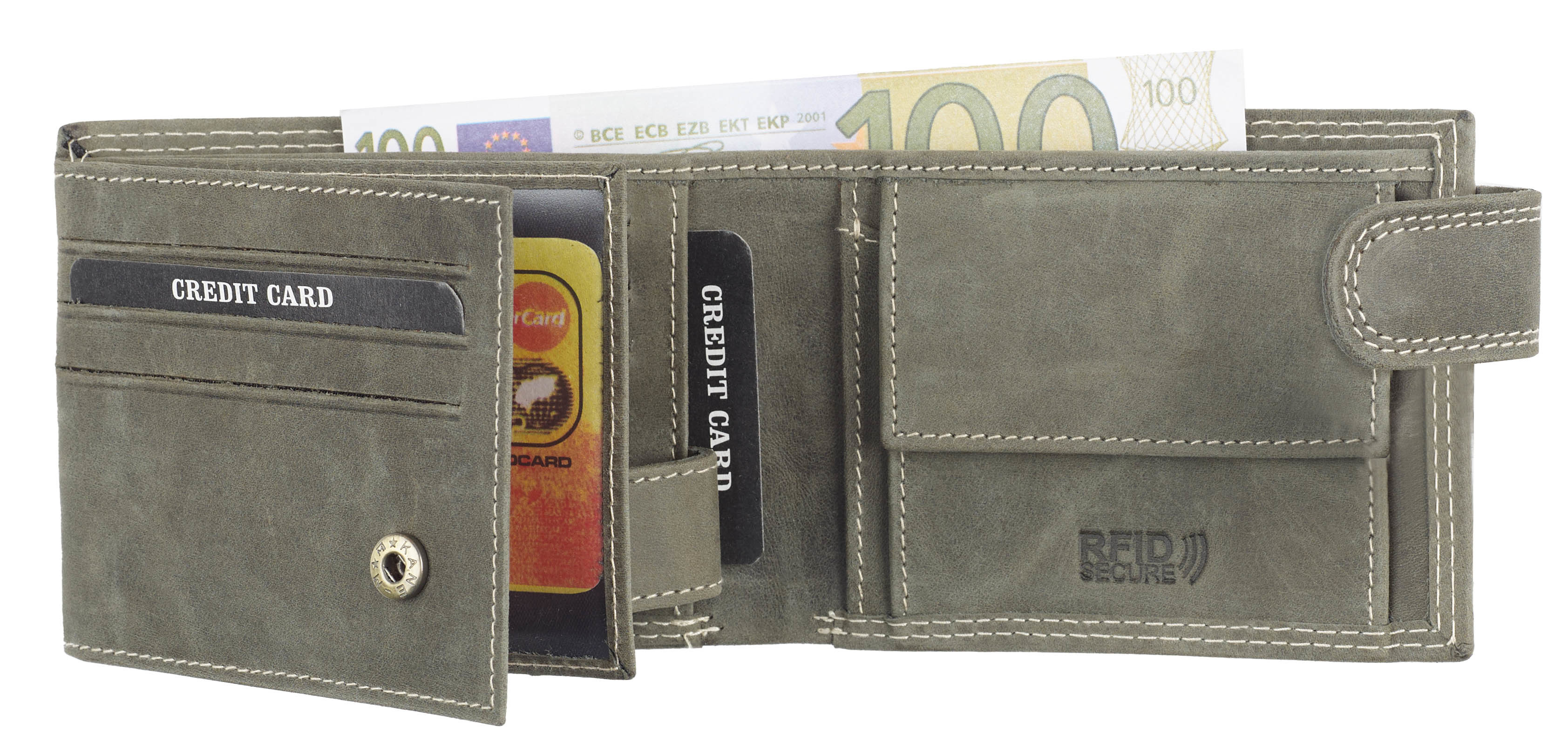 Novčanik muški od brušene kože sa RFID zaštitom 26350 10,5x8,5x3 sa otiscima položeni zelena