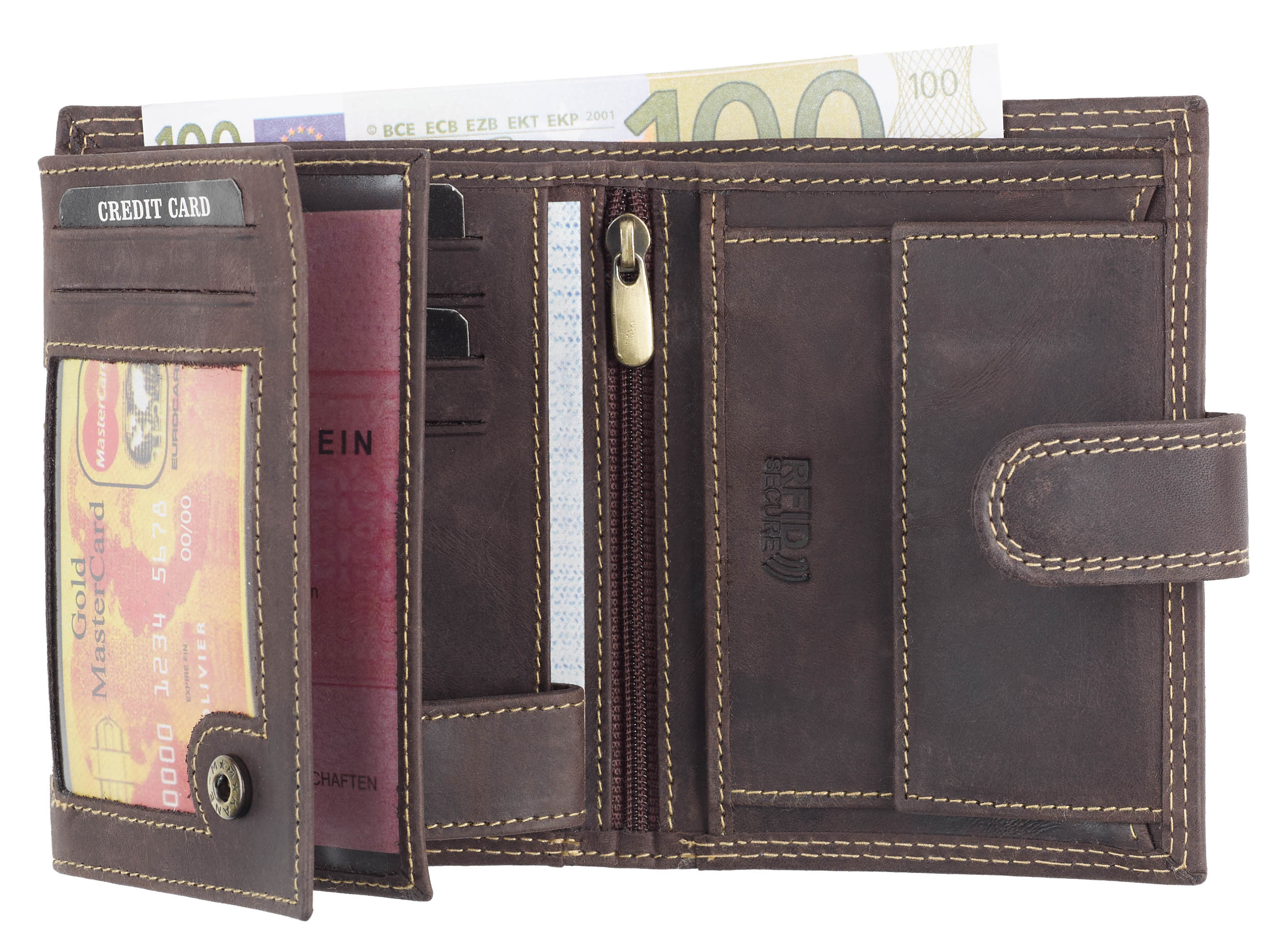 Novčanik muški od brušene kože sa RFID zaštitom 26353 9x12x3 sa otiscima uspravni braon