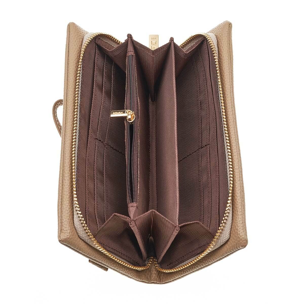 Elegantni ženski novcanik izradjen od kvalitetne ekološke sinteticke kože sa finom završnom obradom. Dizajniran je da kombinuje stil i funkcionalnost - poseduje više pregrada za kartice, novcanice i kovanice, kao i dodatni prostor za licna dokumenta. Zatvara se rajsferšlusom koji obezbedjuje sigurnost sadržaja. Takodje na poledjini se nalazi poseban džep za skladištenje mobilnog telefona sa elegantnom kopcom. Klasican oblik i prefinjena izarada cini ga savršenim dodatkom za svaku priliku.