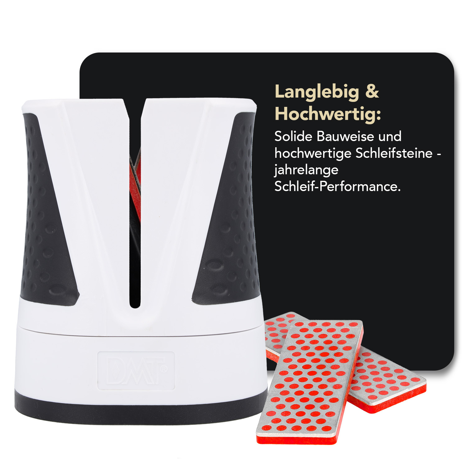 Kompaktan i izuzetno efikasan oštrač za sve vrste naoštrivih noževa. Oštri istovrenemo obe strane prostim provlačenjem noža kroz prorez u kome su dijamantske površine za oštrenje.