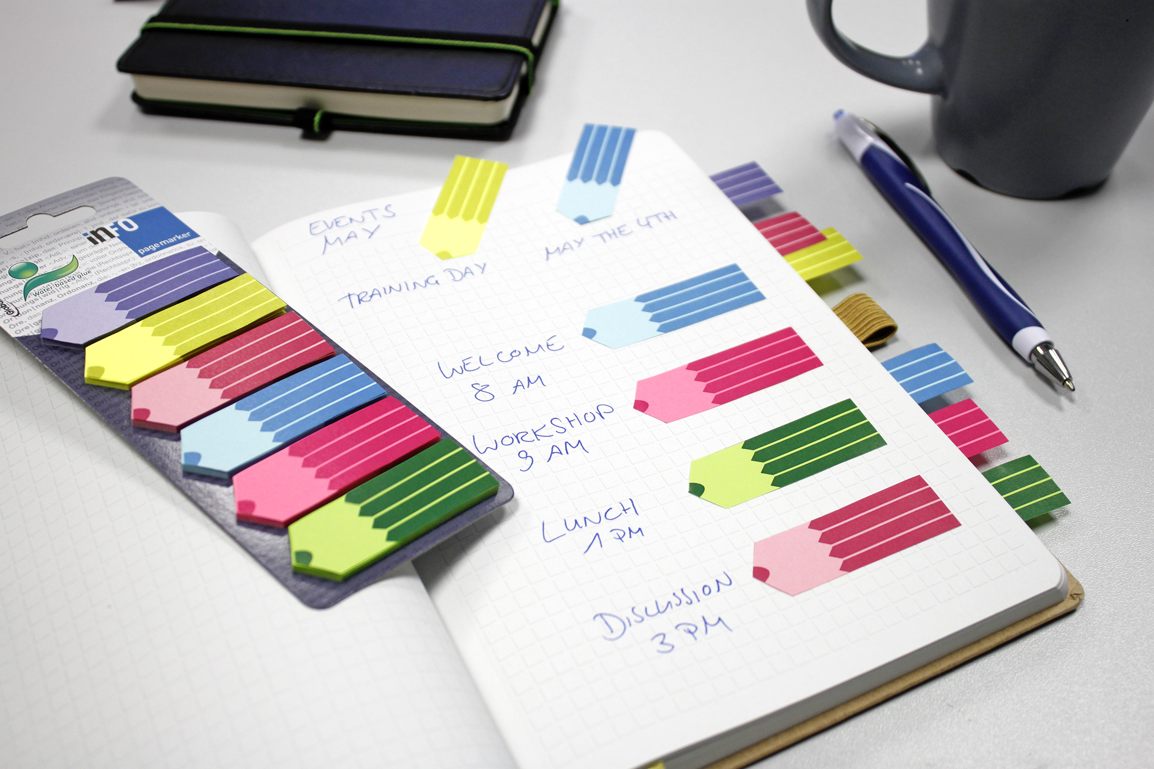 Indeksi za obeležavanje stranica od papira. 6 različitih boja sa izgledom grafitne olovke. 6 x 25 listića dimenzije 18 x 55mm.