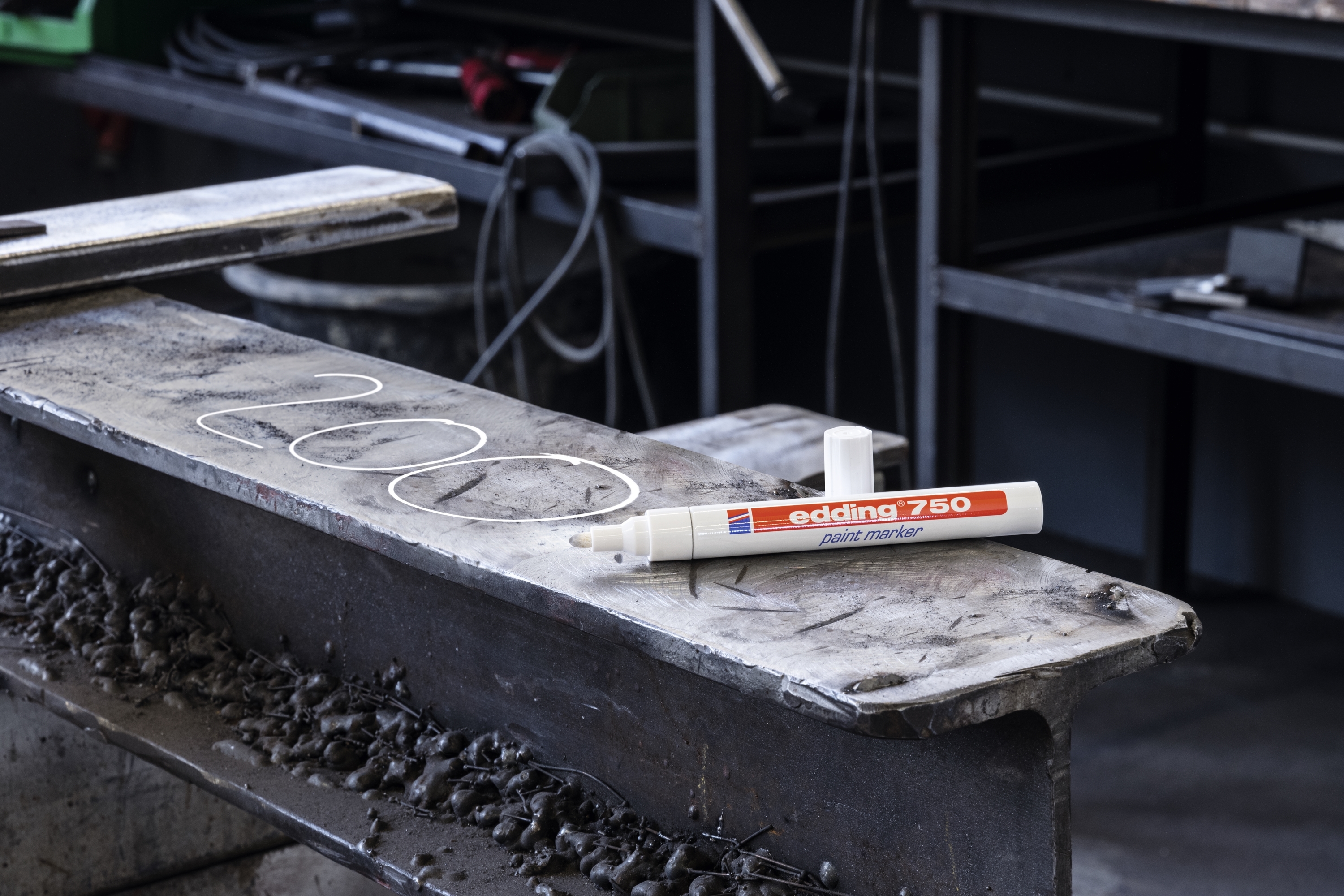 Paint marker E-750 ima potpuno neprovidan trag za obeležavanje na površinama koje mogu biti tamne i transparentne kao što su metal, staklo i plastika. Izuzetno brzo se suši a trag koji ostavlja je otporan na vlagu, svetlost i habanje. Proizvodi se u 14 boja, od kojih su pojedine otporne na temperaturu do čak 1000 stepeni Celzijusa.